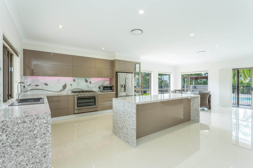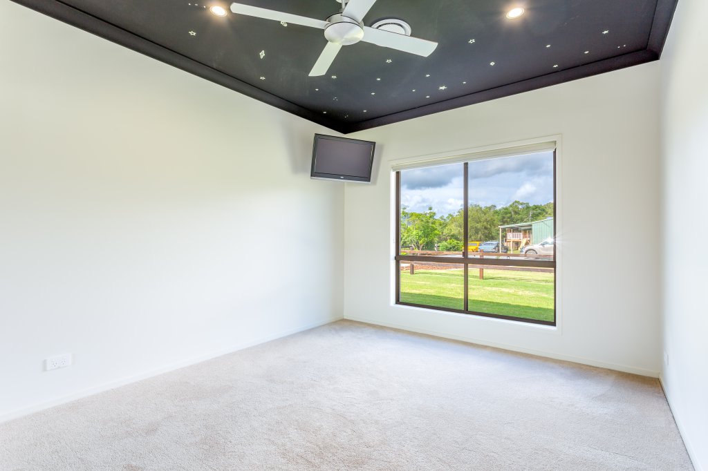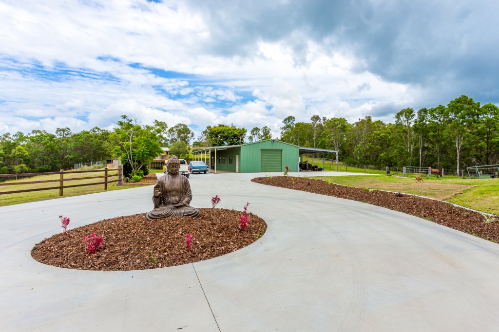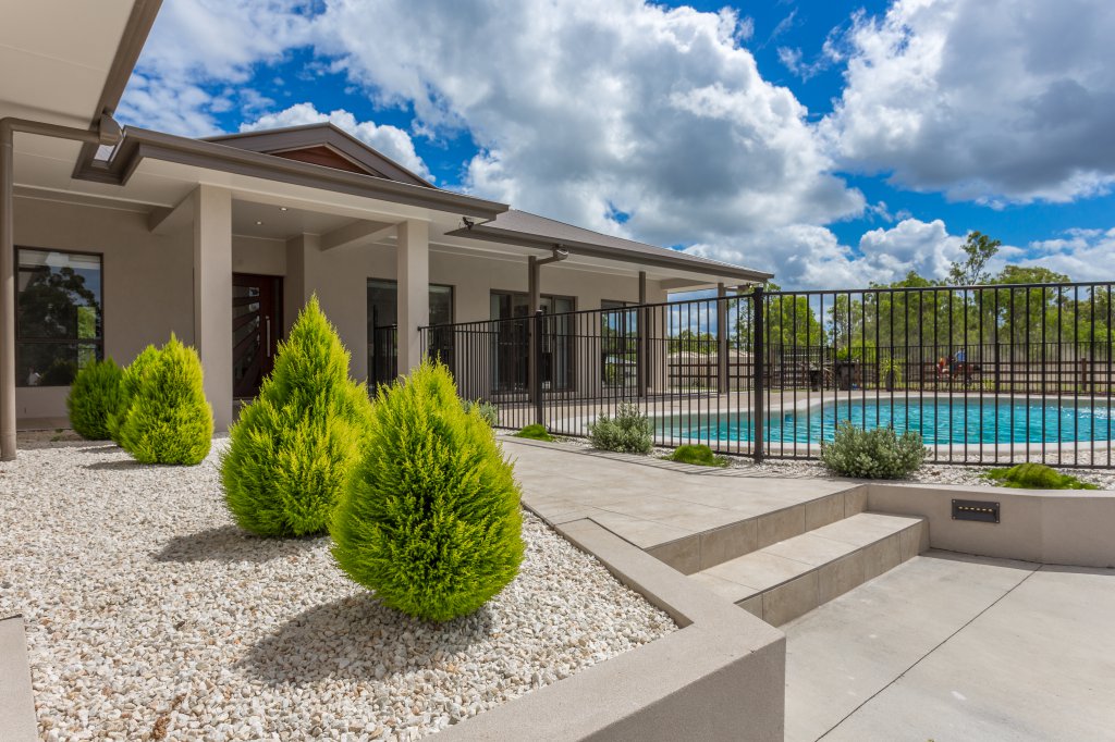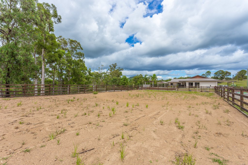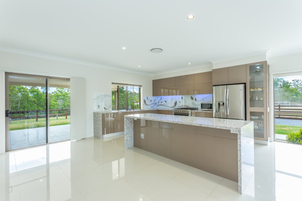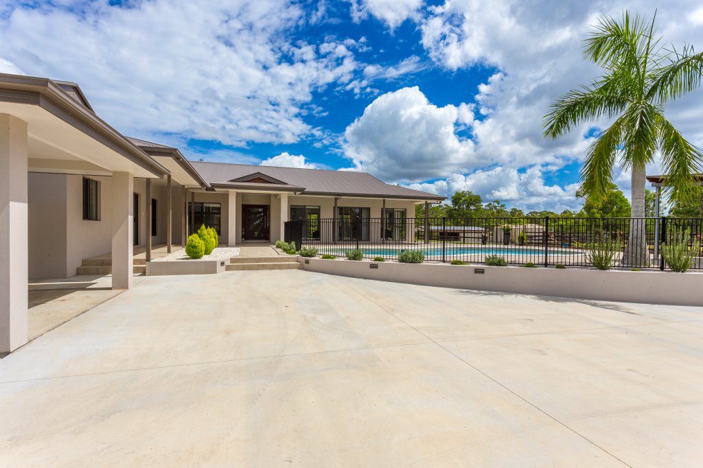 As you arrive at this 32 acre property and drive past the 2 dams and beautiful surrounding landscape you might wonder what style of home is nestled away on this amazing block! Your expectations will never be the same after a visit to this spectacular modern designed home as it raises a new standard of living! As you approach the entry of the home you will notice a roundabout and large parking spaces, meaning you will never again have a problem of parking cars. You will be impressed as you take in how this extravagant home has been cleverly designed so that it is wrapped around the large in ground pool which creates an impressive feature. As you enter the home through the custom made front door your breath will be taken away by the elegance of the 9 foot ceilings and extra wide hallway. The main living area and kitchen are designed to be open plan and no expense has been spared. The kitchen features granite bench tops with waterfall edges and push to open cupboard doors, (no handles) making for easy cleaning. The walk in pantry has plenty of space for all of your food and appliances and boasts a custom made glass feature door that will have all your guests commenting. A generously sized study nook is located in the living area and can be hidden away behind closed doors at any time. The king sized master bedroom is adjoined to a parents retreat and large ensuite featuring a spa bath and spacious shower. The parents retreat and ensuite are easily accessible to the pool area. Don’t be fooled into thinking the man of the house has been forgotten. The 4 bay garage has been designed especially for the car fanatic with a bar area where you can enjoy a drink with your guests. They can also stay the night in the adjoining guest bedroom with bathroom ensuring both yourself and your guests retain your privacy. The horse enthusiast will be taken away with the newly installed quality fences, large stables and a horse arena all established on the property. The home is specially designed to take full advantage of the surrounding views. You can keep an eye on your stock or simply admire the beauty of your own land overlooking bush land, rolling paddocks and mountains without leaving the comfort of your home. Watching the video is a must, so that you can gain a better understanding of the magnificence of this property. Contact Clancy Adams today to book a private inspection at your convenience.
