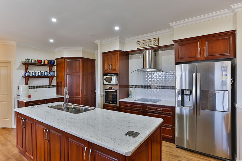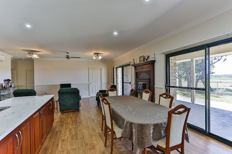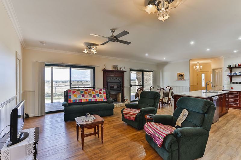 Homestead: As new 4 bedroom, 3 bathroom brick home, designed for the owner who requires room and comfort. Features include stunning Jarra timber kitchen complete with Bosch appliances, excellent bench and cupboard space. Positioned centrally in the spacious open plan living area which caters for family eating and tv area. Formal dining or lounge room is positioned adjacent. Owners have 2 excellent covered entertaining areas ideal for those large family gatherings. The home is fitted with reverse cycle air conditioned and wood heater. It is positioned in an elevated setting which offers excellent views over the property and district.