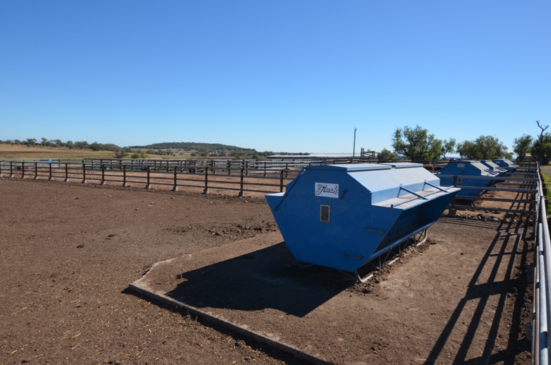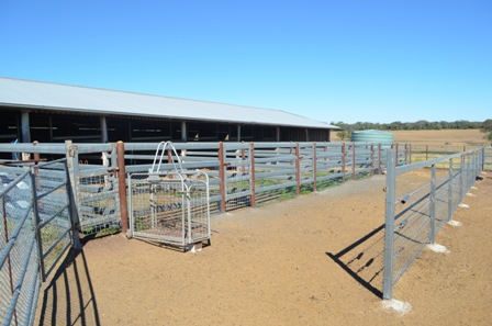 Feedlot or Proposed Horse Facility Exceptionally well constructed, modern 499 SCU Feedlot complex predominately constructed from railway iron posts and cattle rail. 13 round timber post and rail induction yards with pro-crush floodlit drafting yards plus seven extra large cattle rail feedlot pens. Pens are graveled and feed bins are on concrete aprons, wide laneways for good stock movement and pen clean out. Lic $1,400 per year