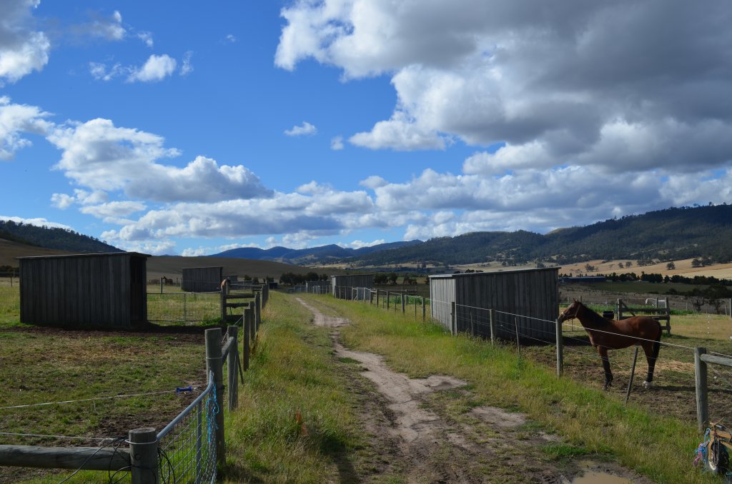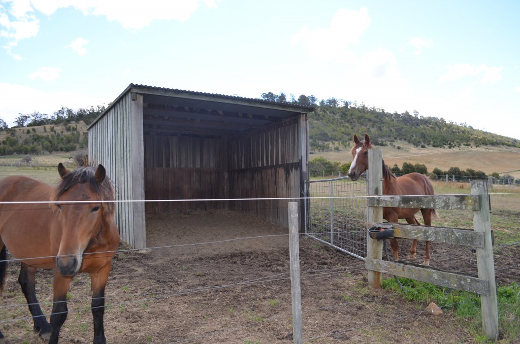 11 timber horse shelters ( 10 shelters splitting 1 acre paddocks into 2 x 0.5 acre paddocks with internal fence and access from either side. 1 shelter splitting 3acre paddock into 2 x 1.5 acre paddocks with internal fence and access from both sides)