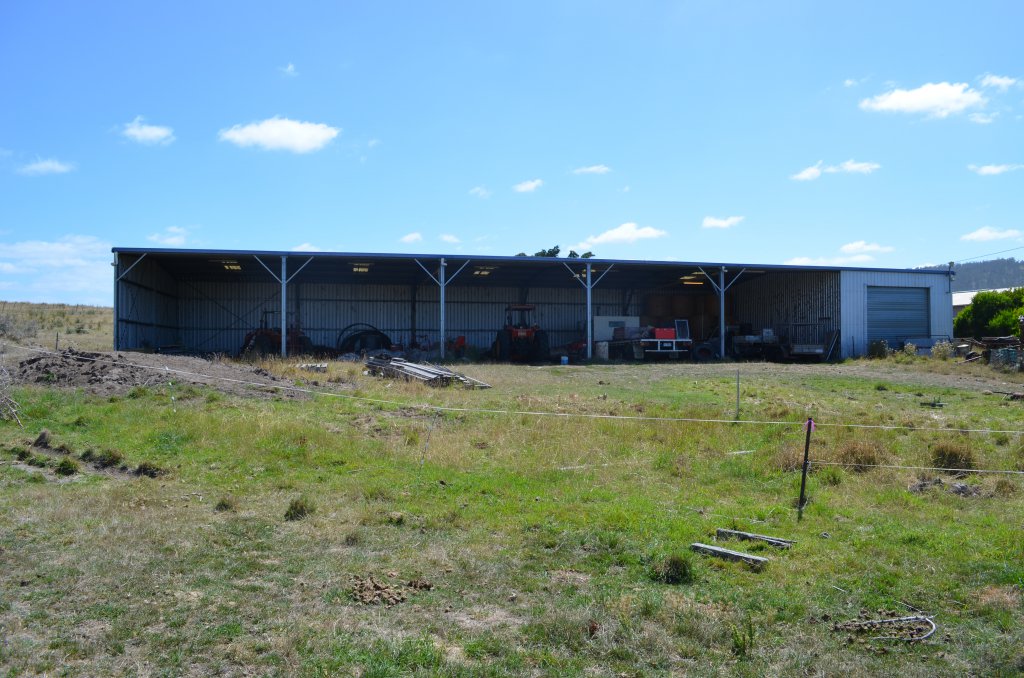 6 bay machinery shed, 1 concrete work bay, 1 concrete enclosed workshop with roller door