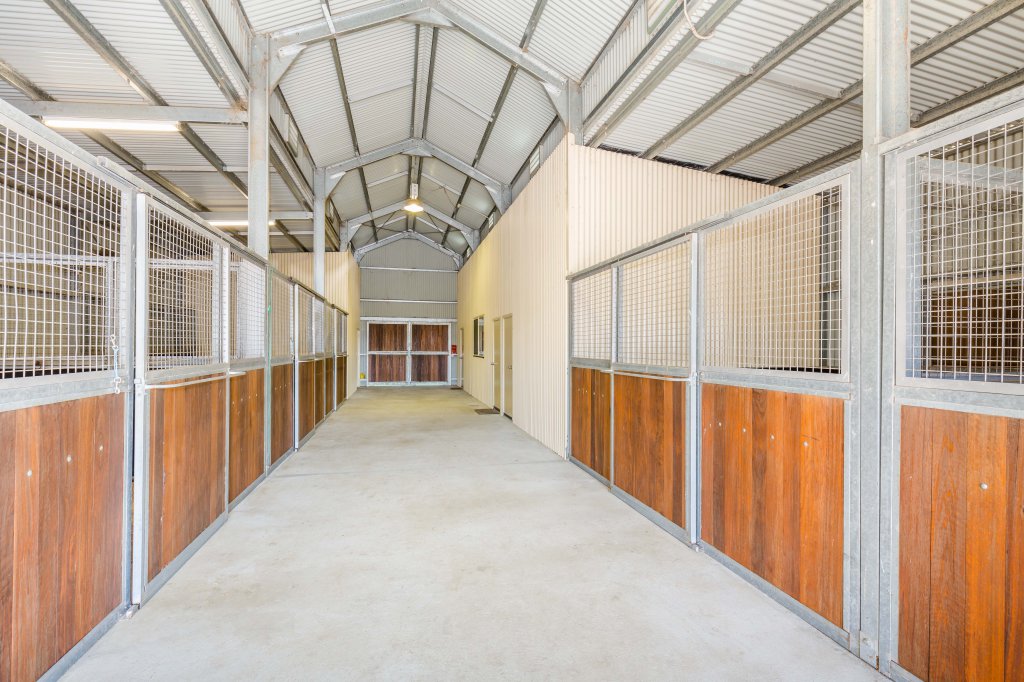 * Large machinery shed/stable building with 7 stables (5 inside, 2 outside);