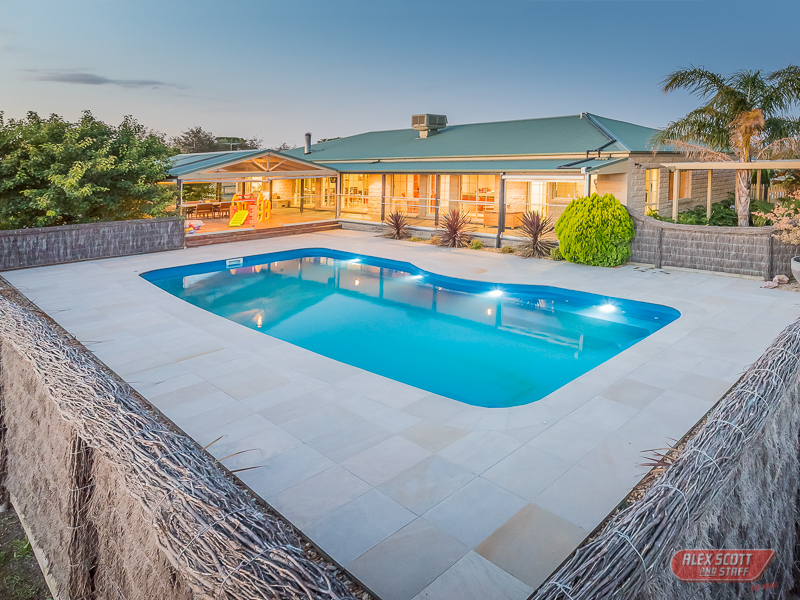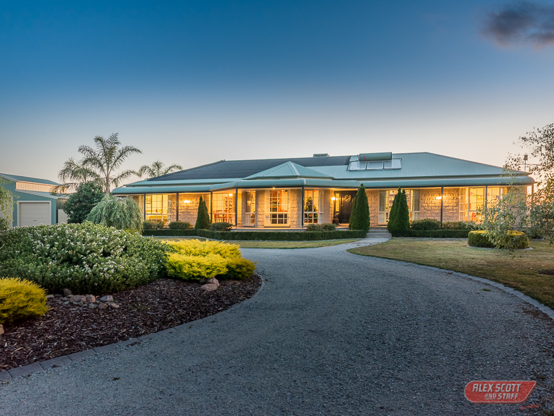 Alex Scott & Staff are proud to present 160 Eleven Mile Road Tynong. This stunning 30 square four bedroom family home provides luxurious living in the peaceful and beautifully scenic environment of Tynong. The Master Bedroom boasts WIR & ensuite, while the remaining three bedrooms all have built in robes and large windows providing the perfect outlook. From head to toe the high ceilings, grey ironbark hardwood flooring & sandstone tiles give you a sense of grandeur. You will be in absolute comfort all year round with evap cooling, wood heater, ducted heating, spilt system air con and solar hot water. The property will make everyone feel at home with four distinctive living areas to cater perfectly to everyone's needs. The interior design exhibits quality fixtures and fittings throughout from the marble bench tops in the bathrooms, to the Blackwood cabinets, and granite bench tops in the kitchen you can’t go past this stunning and well priced property.