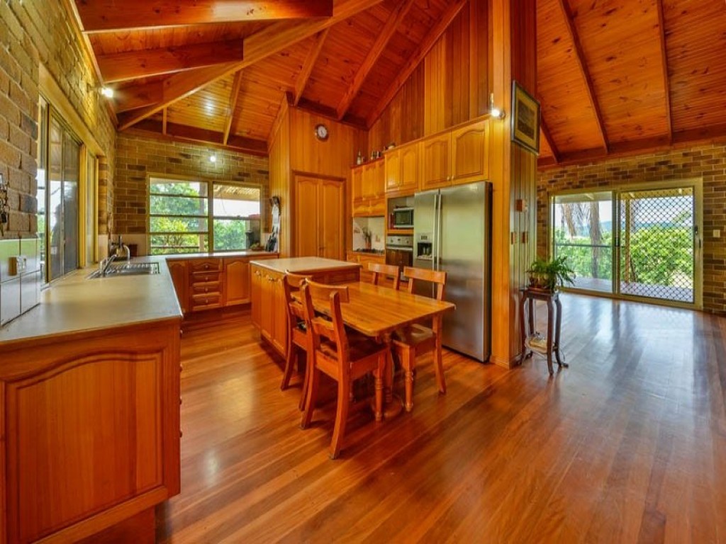 The double brick and timber home with its beautiful polished floors and 9 foot timber ceilings gives a warm country feeling throughout. There are 5 bedrooms with an ensuite and second bathroom. The Tasmanian Oak kitchen boasts quality stainless steel appliances, gas hotplates and a plumbed refrigerator. For those chilly winter nights there is a wood fired heater to keep the home warm and cosy and there are ceiling fans throughout the home.