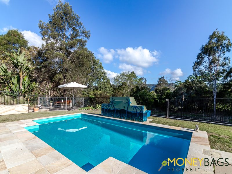 This fully fenced property has a tranquil feel about it, as it has it’s own natural spring creek down the front away from the main residence. A stunning pool with water feature forms part of the mountain back drop view. The entertainment area is huge to say the least and runs the length of the home.