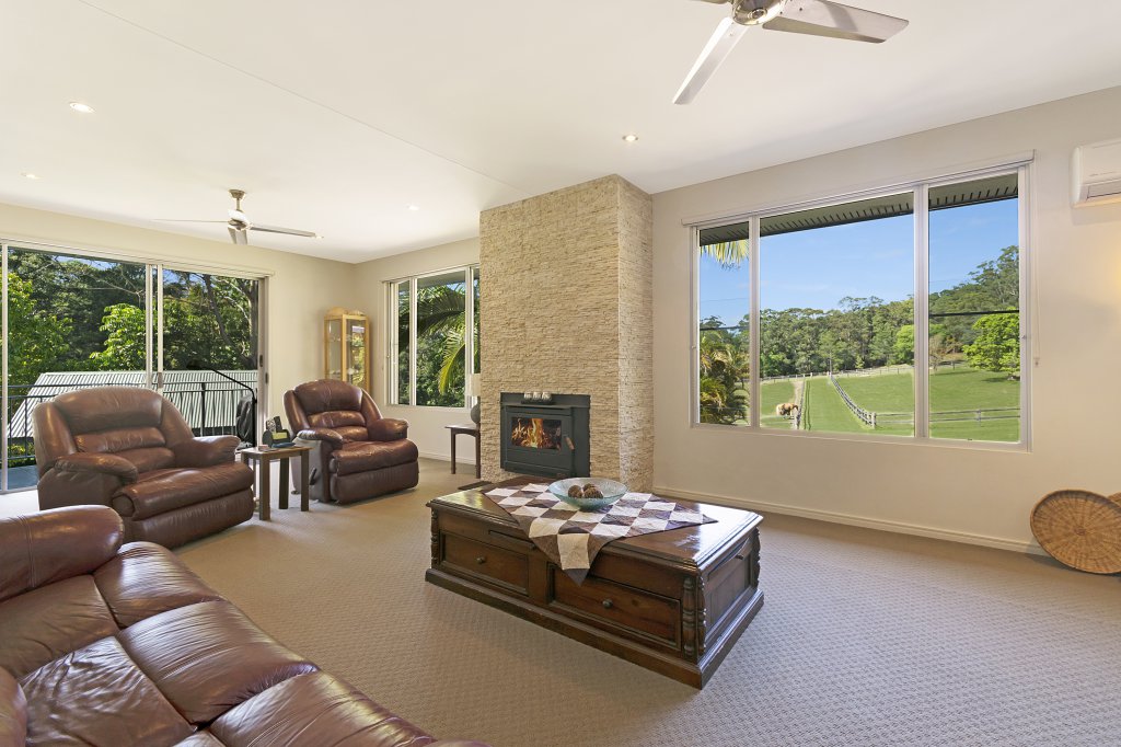 This abundant home has many features that demonstrate it was built for a purpose and not for a price. Extensive glazing in the lounge room draws your eye immediately to the vibrant green acreage, divided only by a full sandstone faced feature wall and built-in fireplace – watching over the horses and acreage is so easy from here.