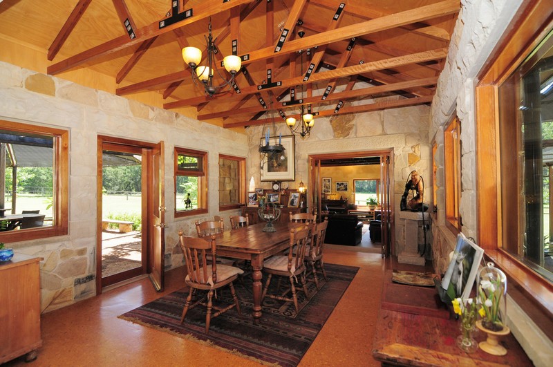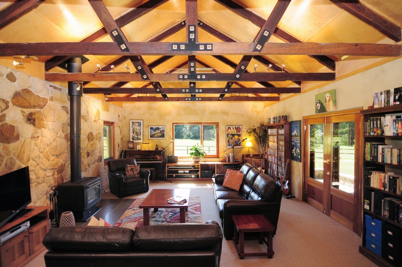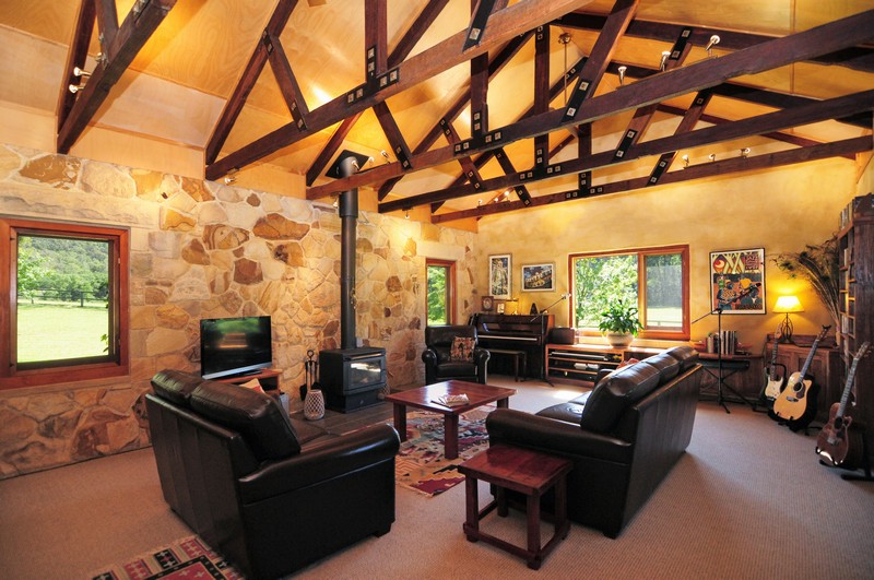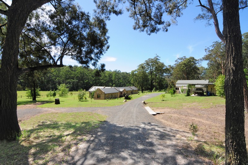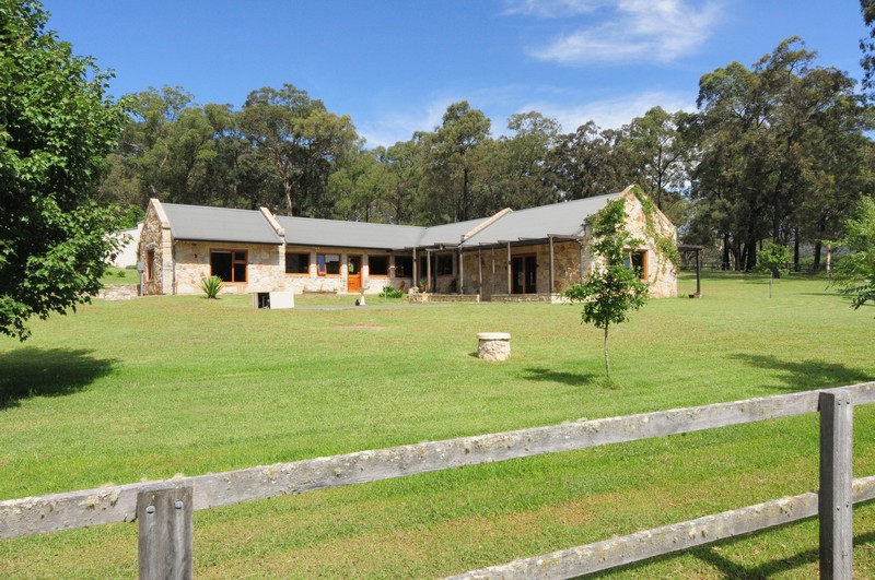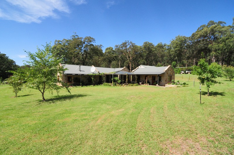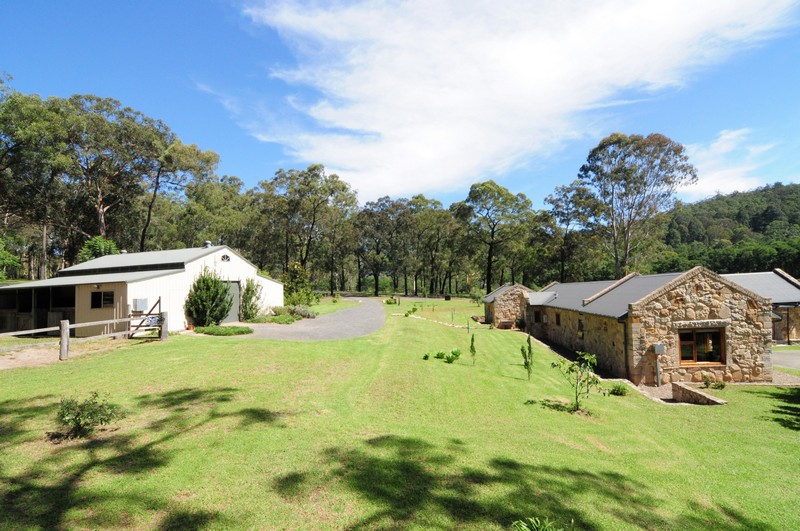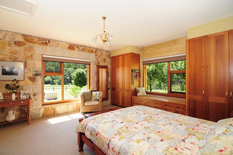 The homestead is a solid sandstone dwelling built in traditional style from honey -coloured Bundanoon stone, naturally patterned and textured with hues from coffee through to dark chocolate, but only 6 years old and with contemporary fixtures throughout. Windows are all cedar and double glazed which, combined with its solar passive design and thoughtful shading, help keep the house a comfortable temperature year round. The master bedroom has a peaceful outlook over the paddocks, built in cedar fronted robes and a luxurious ensuite complete with feature Italian stone bath. The open plan kitchen features warm cork flooring, Caesar stone surfaces, a large walk-in pantry and flows through to an airy dining room with raked ceiling and stone feature walls. Stepping down into the spacious lounge you can enjoy views over the fields and tree clad hills happy in the knowledge that there are no other dwellings anywhere to be seen. The raked ceiling in the lounge features impressive Ironbark carpentry and a large slow combustion wood burning stove creates a cheerful focus for those brisk winter nights.