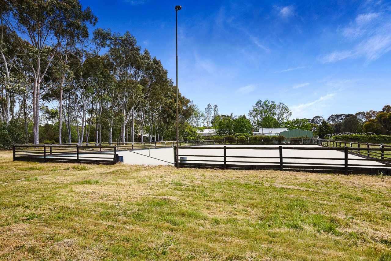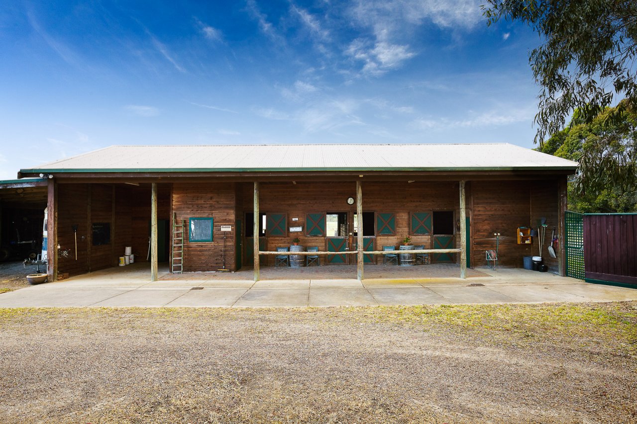 mains water to 11 paddocks, electric fencing and multiple shelters, flood lit sand ménage, stable complex with day yards, tack and feed rooms, hot wash, barn, machinery and hayshed, 2 water tanks, double float shed, three dams plus rainwater tank for the house and vegetable garden