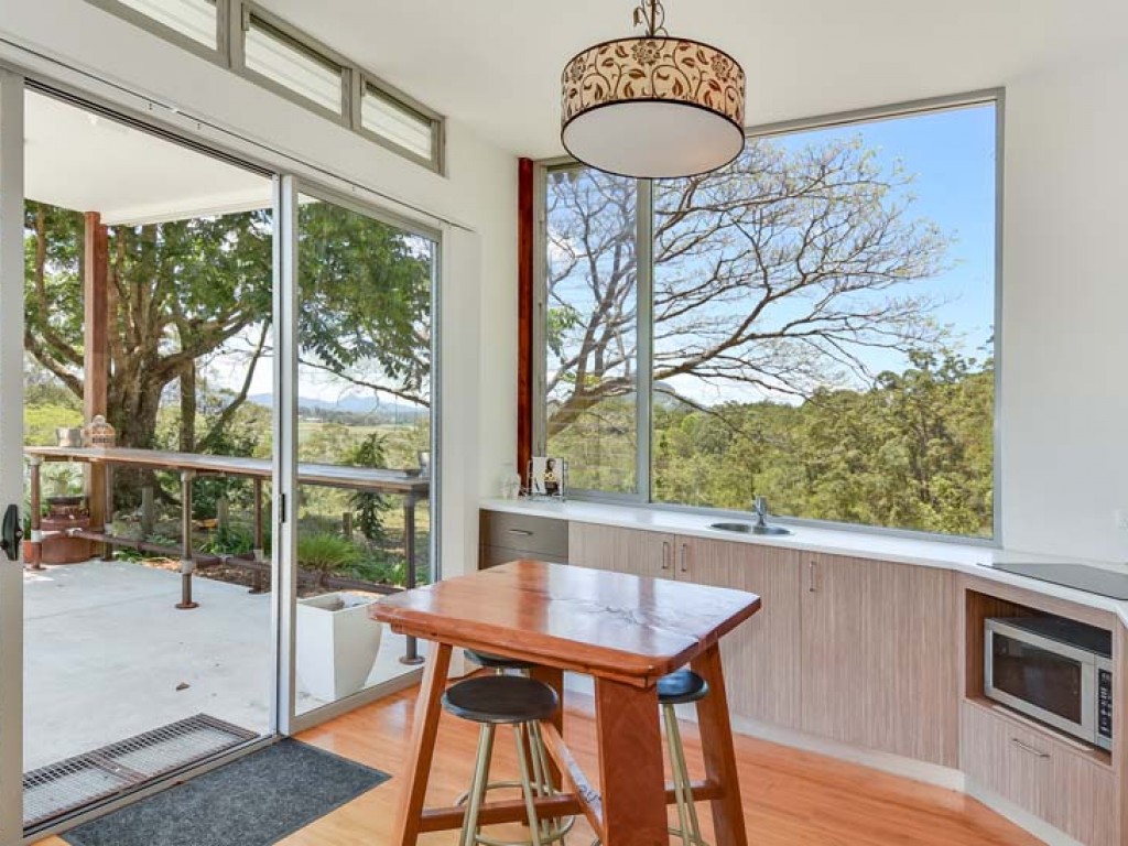 Adjacent to the home is the studio building. This building with 8ft ceilings, has two bedrooms, bathroom, lounge and kitchen with a large window to the north so as to soak in the scenic views. An outdoor covered bench adjacent to the kitchen is an ideal place to relax and have a casual drink after a long day.