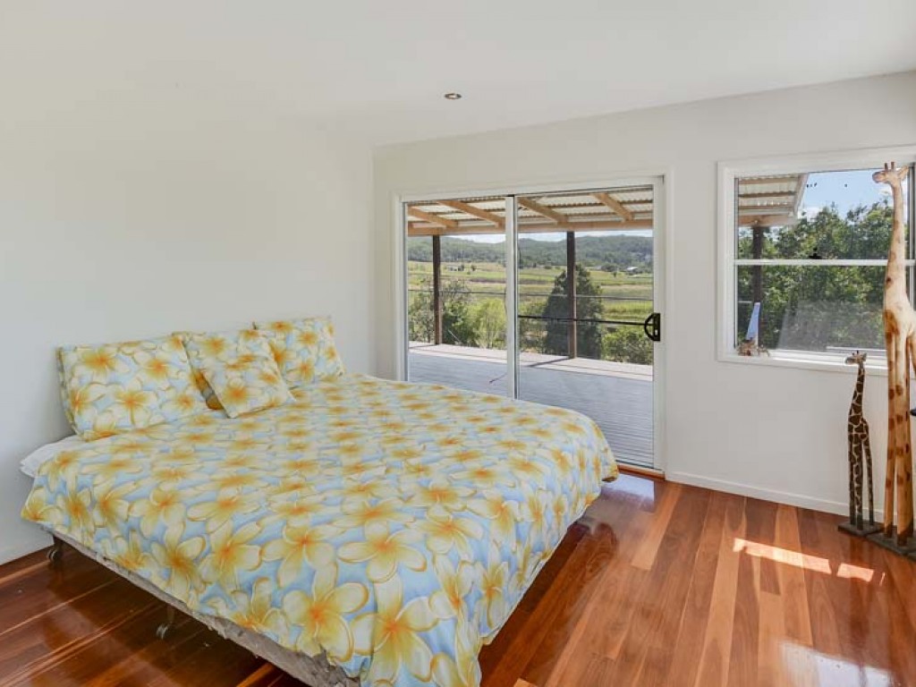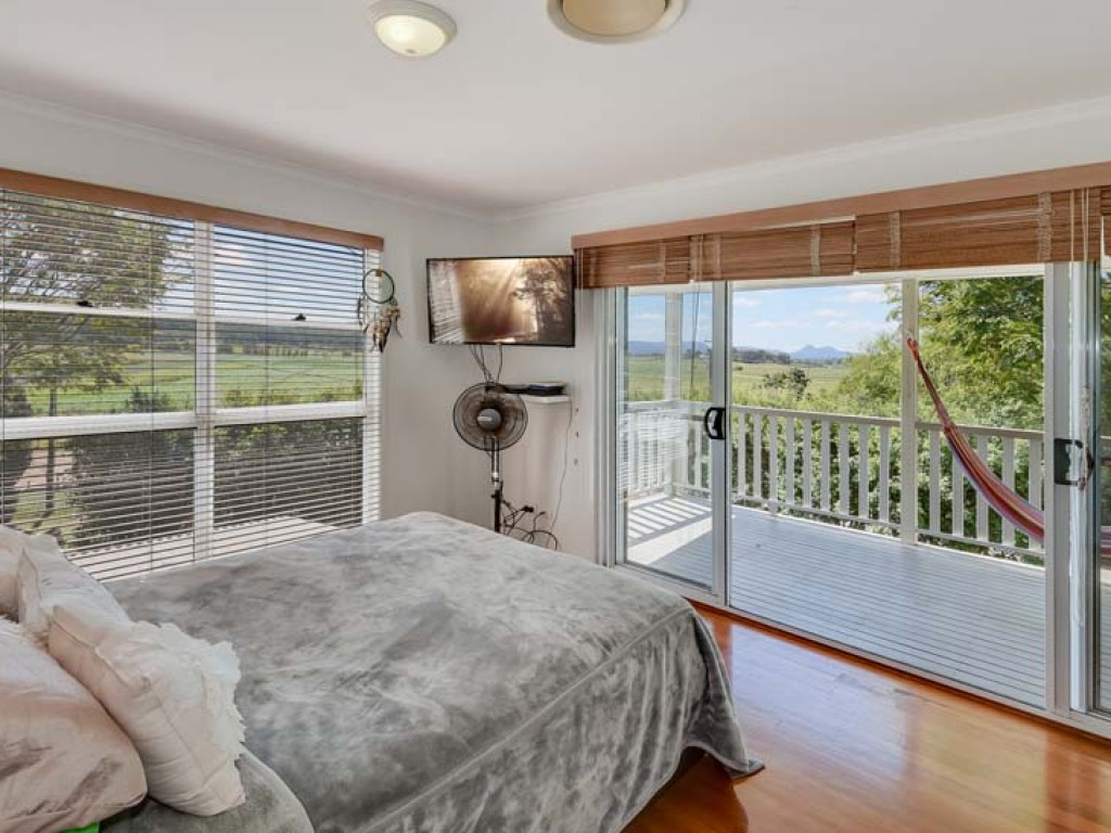 There is a substantial modern five-bedroom home on the property over three levels that also gives flexibility with income if desired. The home comes in three sections – the original, the new and the apartment. The original section has two bedrooms, modern kitchen with attractive timber benches with the latest appliances, lounge and dining area with polished parquetry flooring opens out onto a cool verandah with beautiful rural views. In fact, spectacular rural views of Mt Ninderry and across the Maroochy River Valley are obtained from almost anywhere on the property. A main bedroom which is a half a floor higher has a walk-in robe, ensuite with bath and shower. The bedroom opens out onto its own private verandah with views! The second bedroom is also on this level plus the main bathroom with bath and shower.
