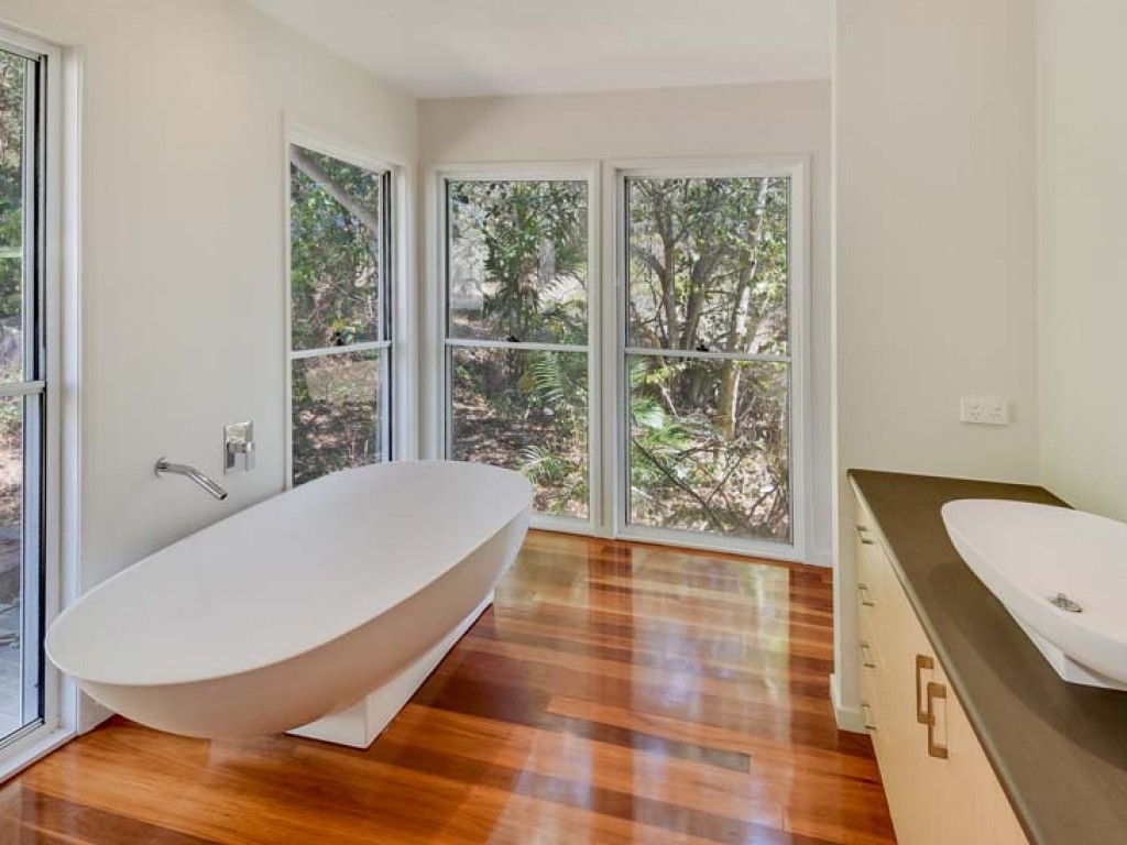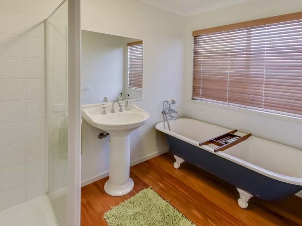 The master bedroom is extra-large (5.8m x 4m) and has a custom built walk-in robe for him and her. The ensuite has a unique feature bath, vanity sink and incomplete shower (just needs a tiler to visit to complete).