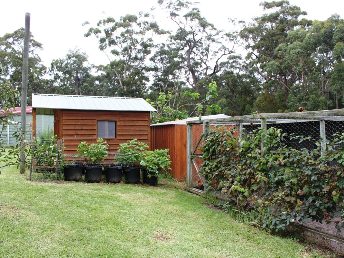 Pump from the dam to water the vegetables and fruit trees which include tropical papayas, morin and bitter melons, much sought after by foodies. There are several raised and netted vegetable gardens and a chook pen.