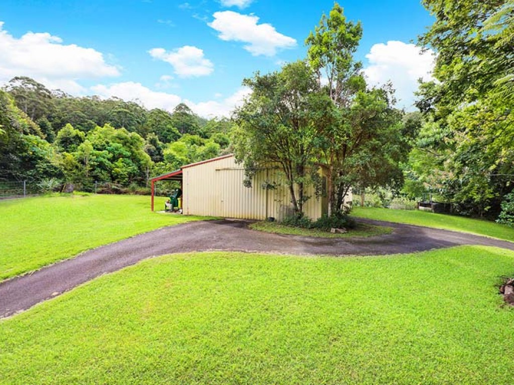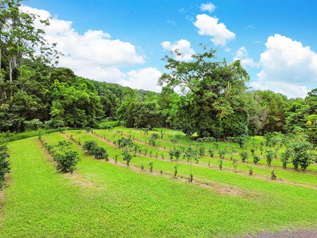 As soon as you drive through the gate you get a sense of what this property offers. The mainly bitumen driveway meanders through the property past the coffee and tea plantation, over the wooden bridge with its idyllic rainforest setting up to the home.