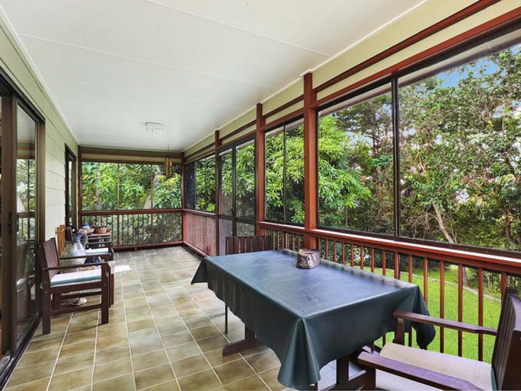 The rear veranda is an ideal place to have morning and afternoon teas, overlooking the beautiful sub-tropical garden.