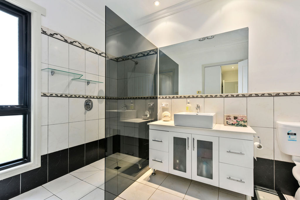 With a highly functional floorplan geared towards easy living, the home features a classic and comfortable formal lounge with large windows and wood heating, whilst a generous space accommodates the ultra-modern kitchen, dining and family area, with easy access out to the courtyard/BBQ area. All bedrooms are of a grand scale, the master suite with his and hers robes, discretely merging into the ensuite. The wet areas are large and sophisticated, streamlined with frameless glass screens, both with the benefit of underfloor heating for year-round comfort.