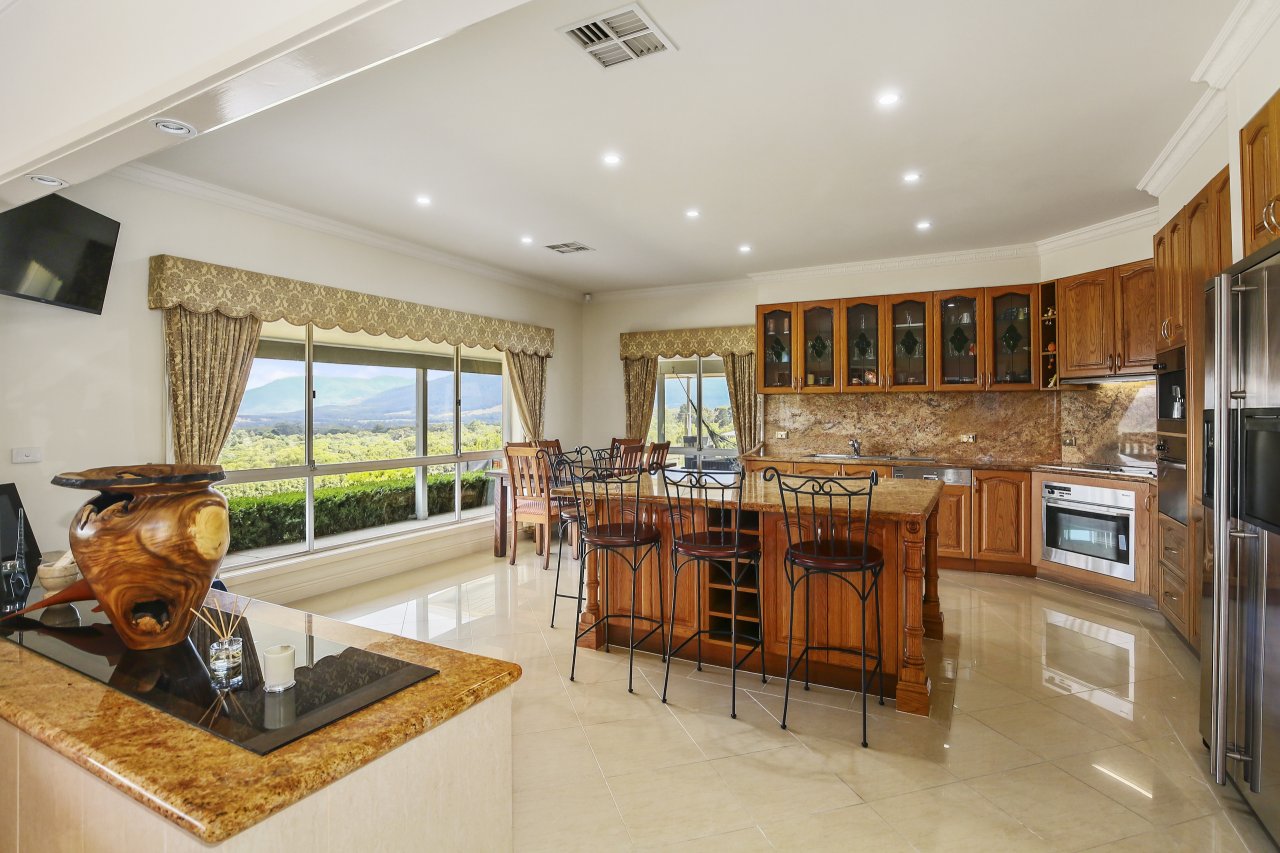 This stunning lifestyle property is a must to inspect as the options here for you, your extended family or those seeking the elusive and exclusive venue with bed and breakfast potential (STCA) are all presented here in this immaculate home. The breathtaking views capture you as you are enticed along the winding driveway, admiring the pristine paddocks, the exceptional fencing and along to the much loved family home. An expansive residence is presented with 5 or 6 bedrooms, 2 or 3 internal living zones, 3 bathrooms, powder room and the outdoor entertaining precinct is proudly positioned to capture the enormity of the view, whilst relaxing in your premium spa, or cooking up a storm for the guests in the outdoor kitchen. A luxurious home featuring 2 full kitchens with quality Granite benchtops, the main showcasing Miele appliances, built in steam oven and coffee machine, integrated dishwasher and a stunning granite island bench being the focal point of the kitchen. The versatile floor plan allows an easy integration for the home to be used all in one, or to be occupied completely separately from one end to the other, making this the ideal set up for extended families or to embark upon a business opportunity in the perfect Yarra Valley location.The beautiful property has been divided into approx. 9 paddocks providing water to most, 4 dams, 2 bores, trunk mains and tank water to ensure an enormous water supply. The main dam provides summer fun for the kids and guests with a pontoon jetty and plenty of room to kayak and horse around. There are stables for the horses, a very fancy chook pen with solar powered electric fencing and for housing the big boys toys there is extensive lock up garaging in addition to ample external parking. This unique property is certainly one to be admired and as you fall in love with the breathtaking views, you will never want to leave.