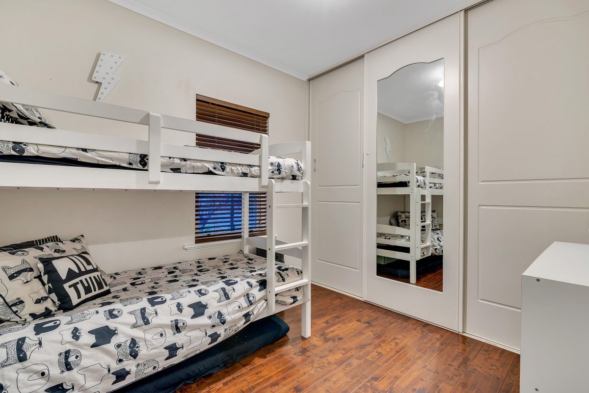 Renovated toilet and bathroom with quality fixtures and fittings service the home, whilst the spare separate toilet is also available for your family’s busy morning rush. The laundry is also spacious and opens out to the undercover entertainment area through a security door.
