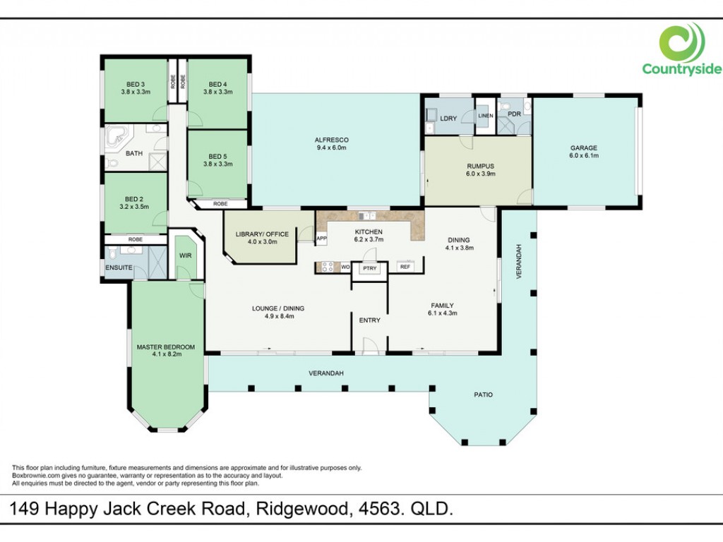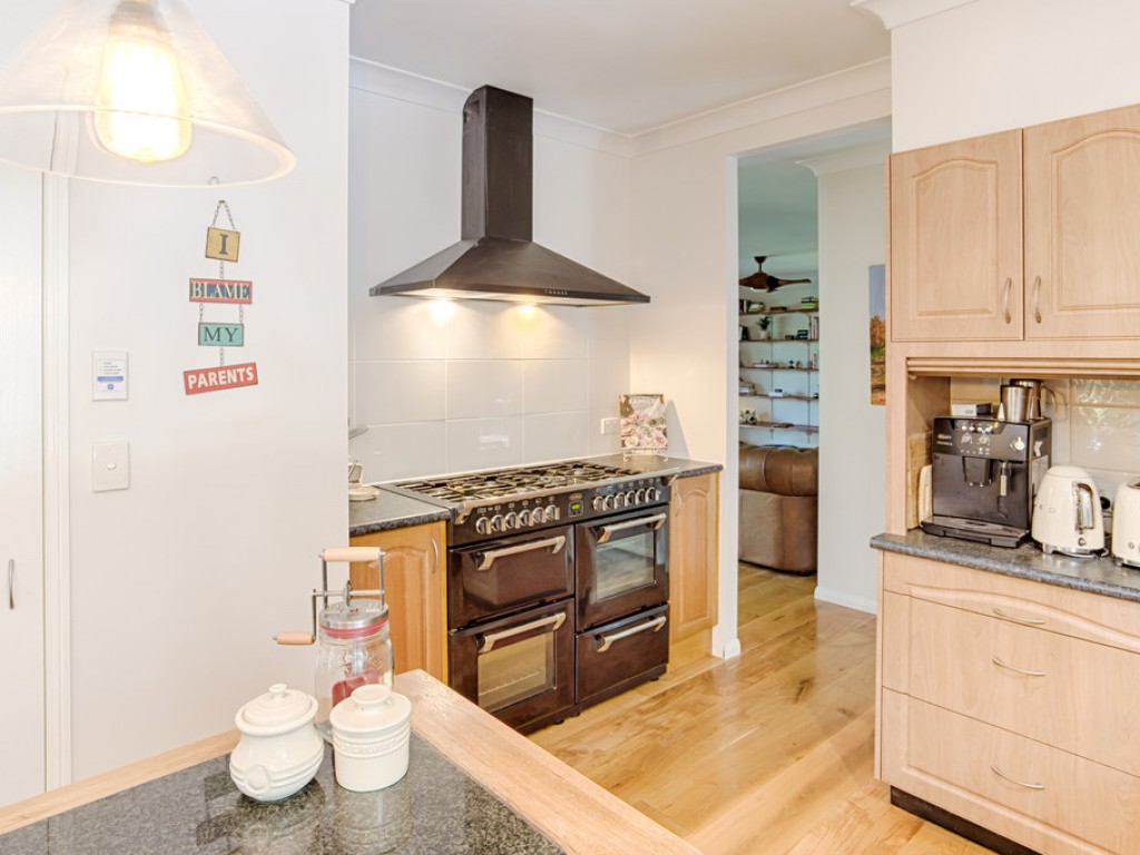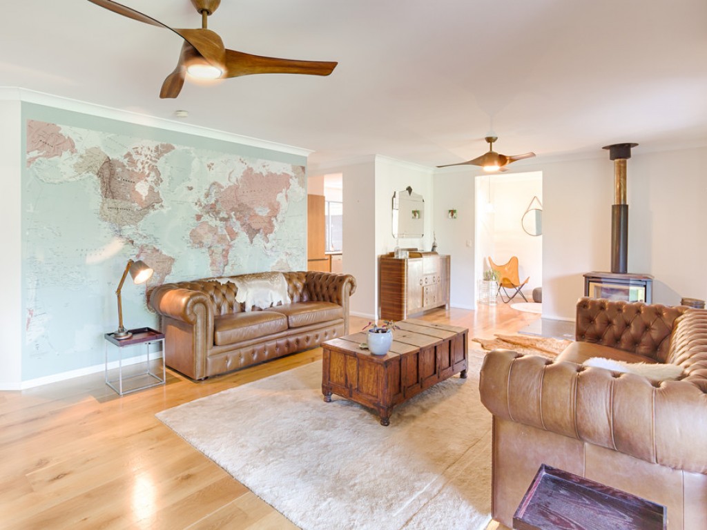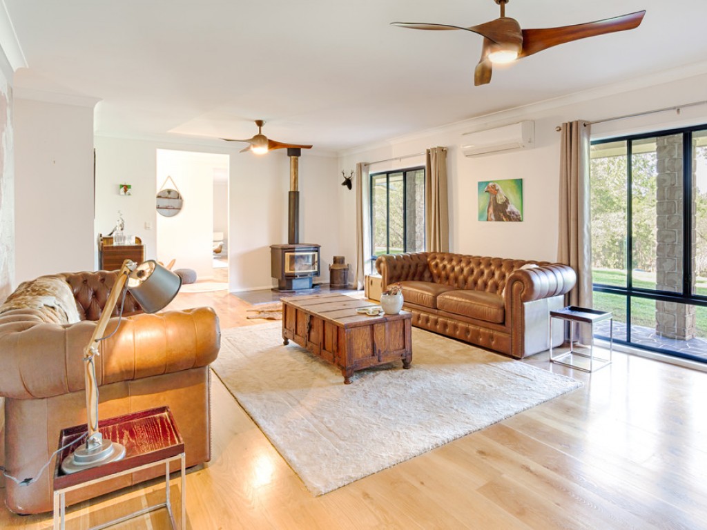 Presentation is pristine and features include elegant entry foyer, high ceilings, huge windows to invite in natural light, ¾ inch solid French Oak timber flooring, wood burner and air-conditioning in family room, ceiling fans throughout, quality carpets in bedrooms, bay window sitting room in huge master suite, high-end appliances, and a well-designed floorplan that facilitates excellent family-friendly living, with the possibility of hobby farming, dual living or Airbnb options. With school bus pick up right at the front gate the family will be well catered for.