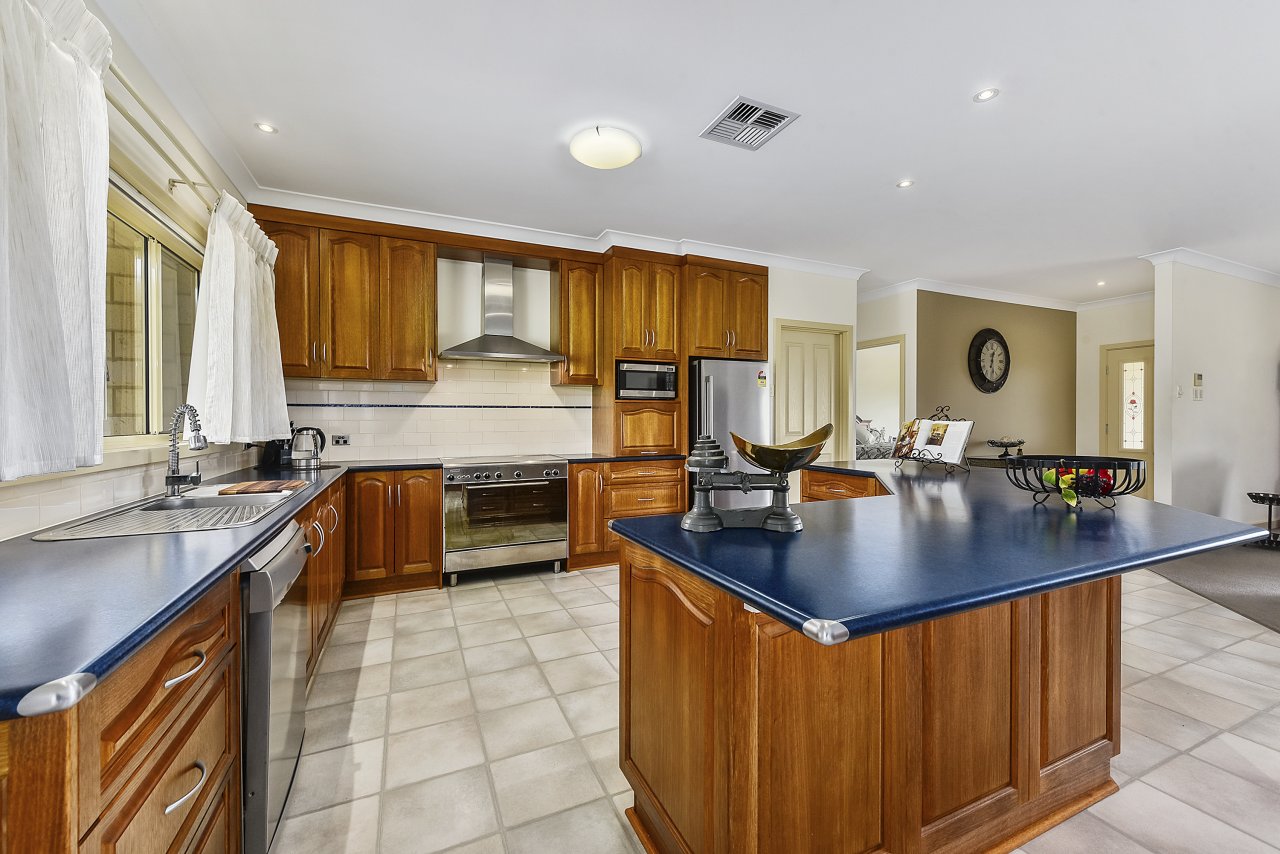 • Blackwood kitchen has a 900mm stainless steel gas stove of 5 hobs and fan forced oven, range hood, double sink, dishwasher, concealed breakfast storage, an island bench with an abundance of drawer storage and with under bench led lighting