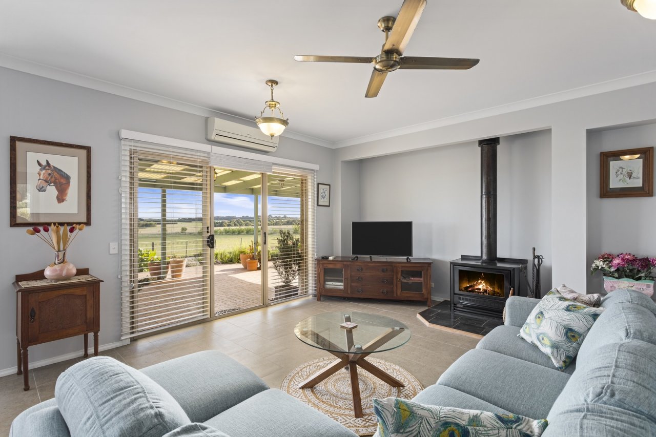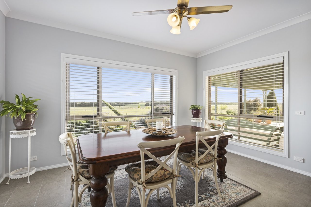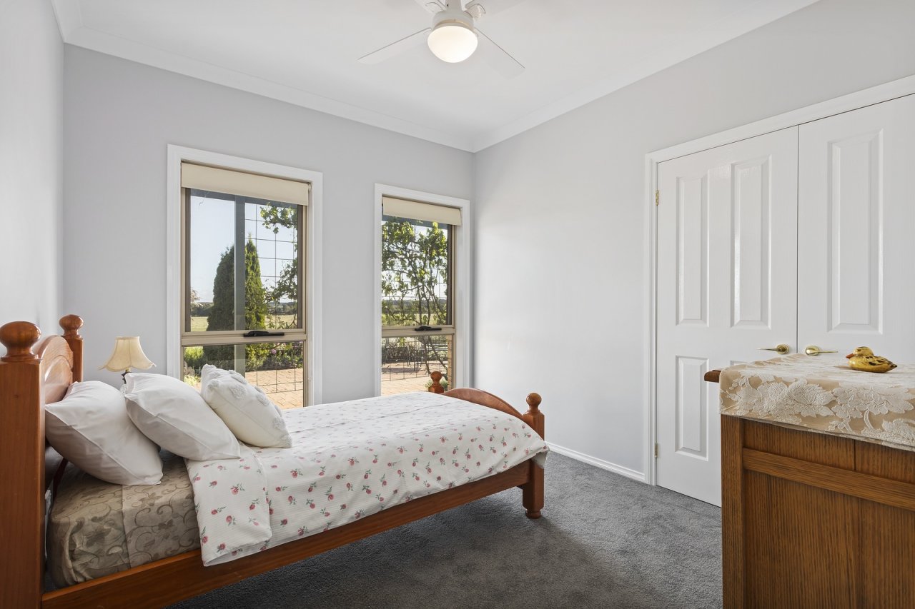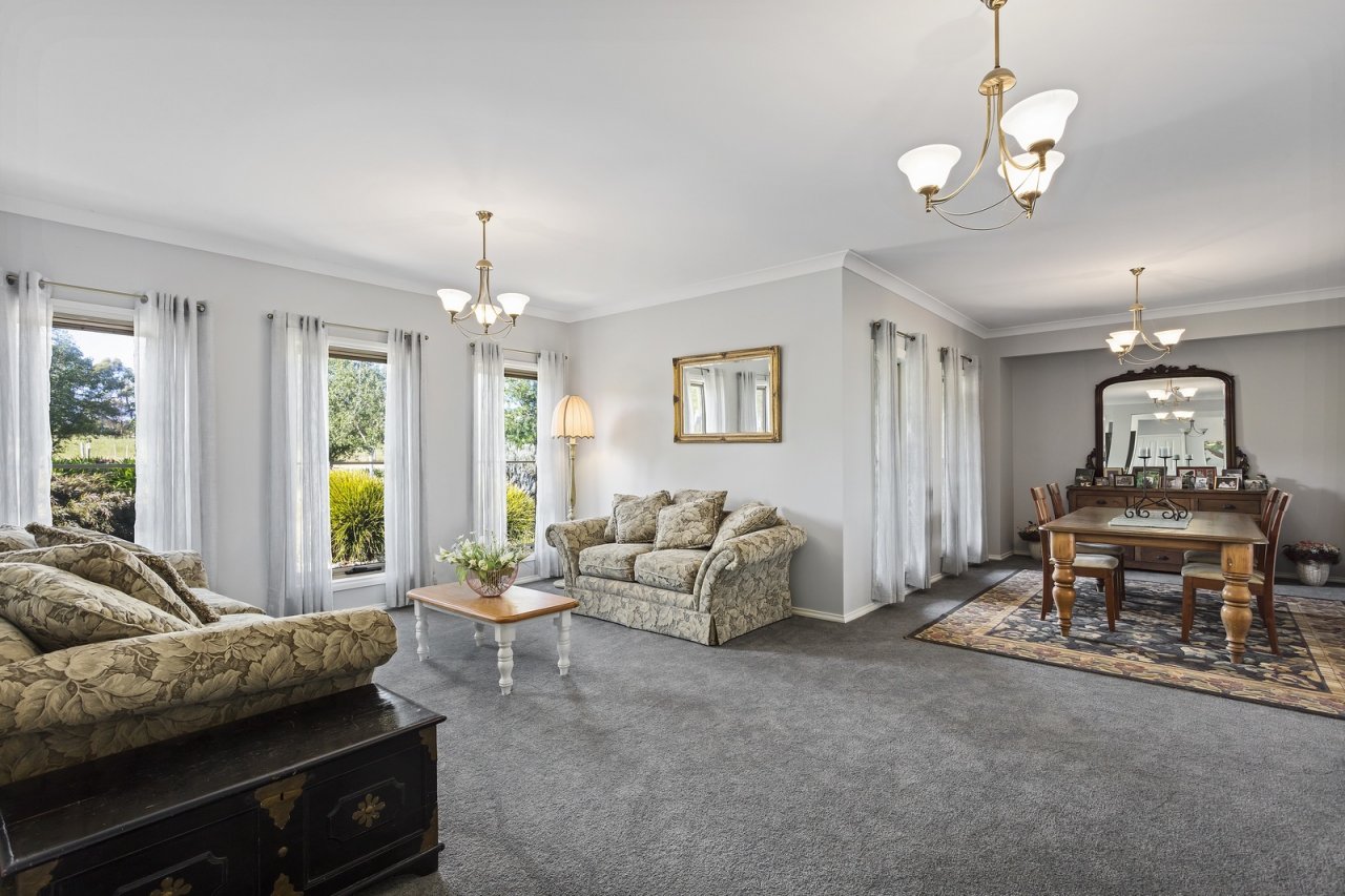 This 10-year-old luxurious four bedrooms plus study home has been recently updated - repainted throughout, new quality floor tiles, carpet and window furnishings - to create a charming, modern country style property. The master bedroom suite includes a full ensuite and large walk in robe. The very well-appointed kitchen is truly the hub of the home and boasts plentiful storage, two 600 mm ovens (one gas, one electric), a six burner gas cook top including two wok burners, dishwasher and large island bench. This area is open plan and includes a casual dining area and spacious informal lounge. Ambience is provided by the wood heater and large north facing windows where you can see for miles and watch your livestock grazing contentedly in the paddocks. Stepping out onto the outdoor entertaining area you can dine al fresco, read a book or just sit and take in the fresh country air. For a more formal occasion, a sense of grandeur can be felt in the formal lounge and dining room situated off the front entrance.