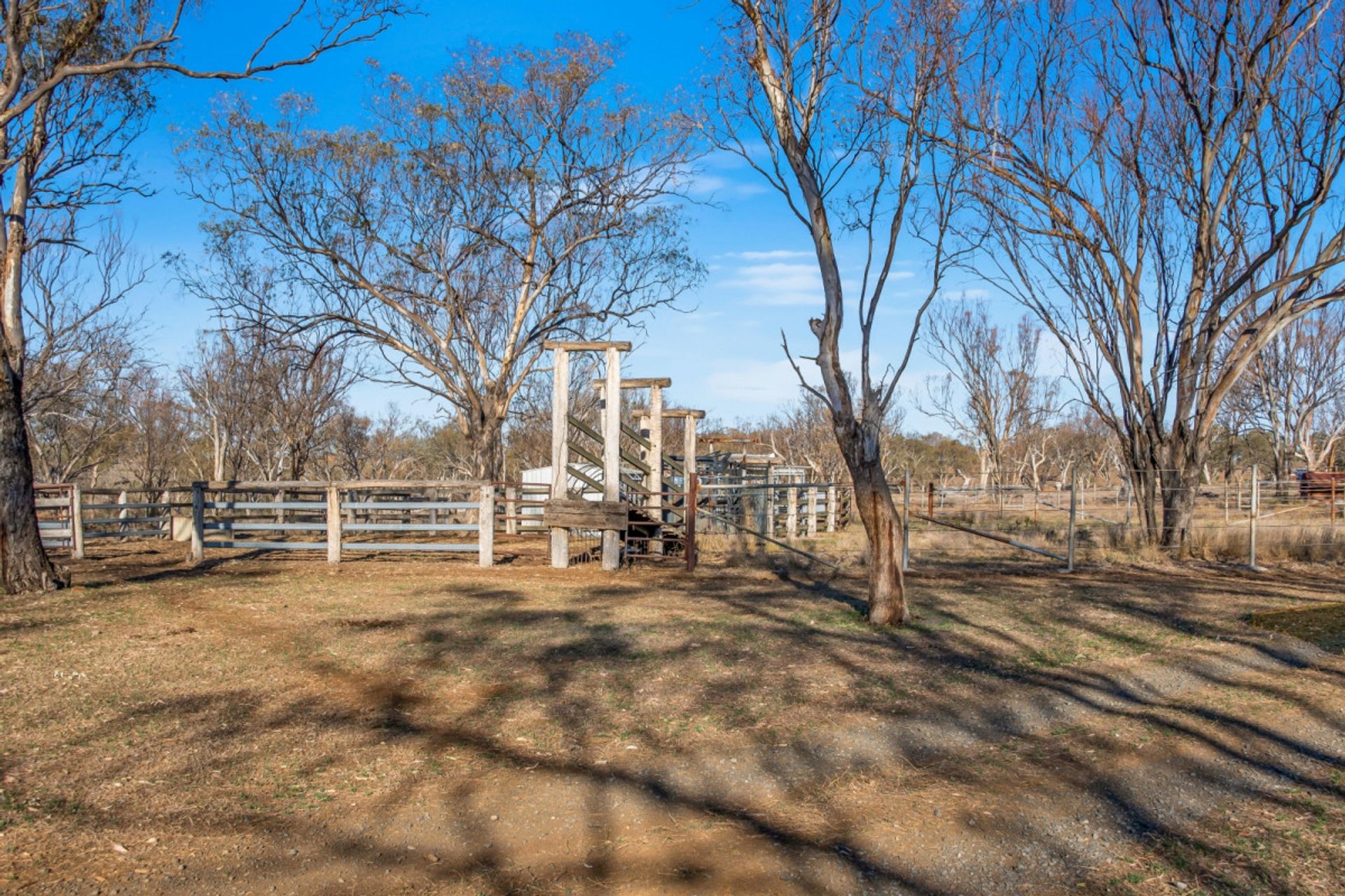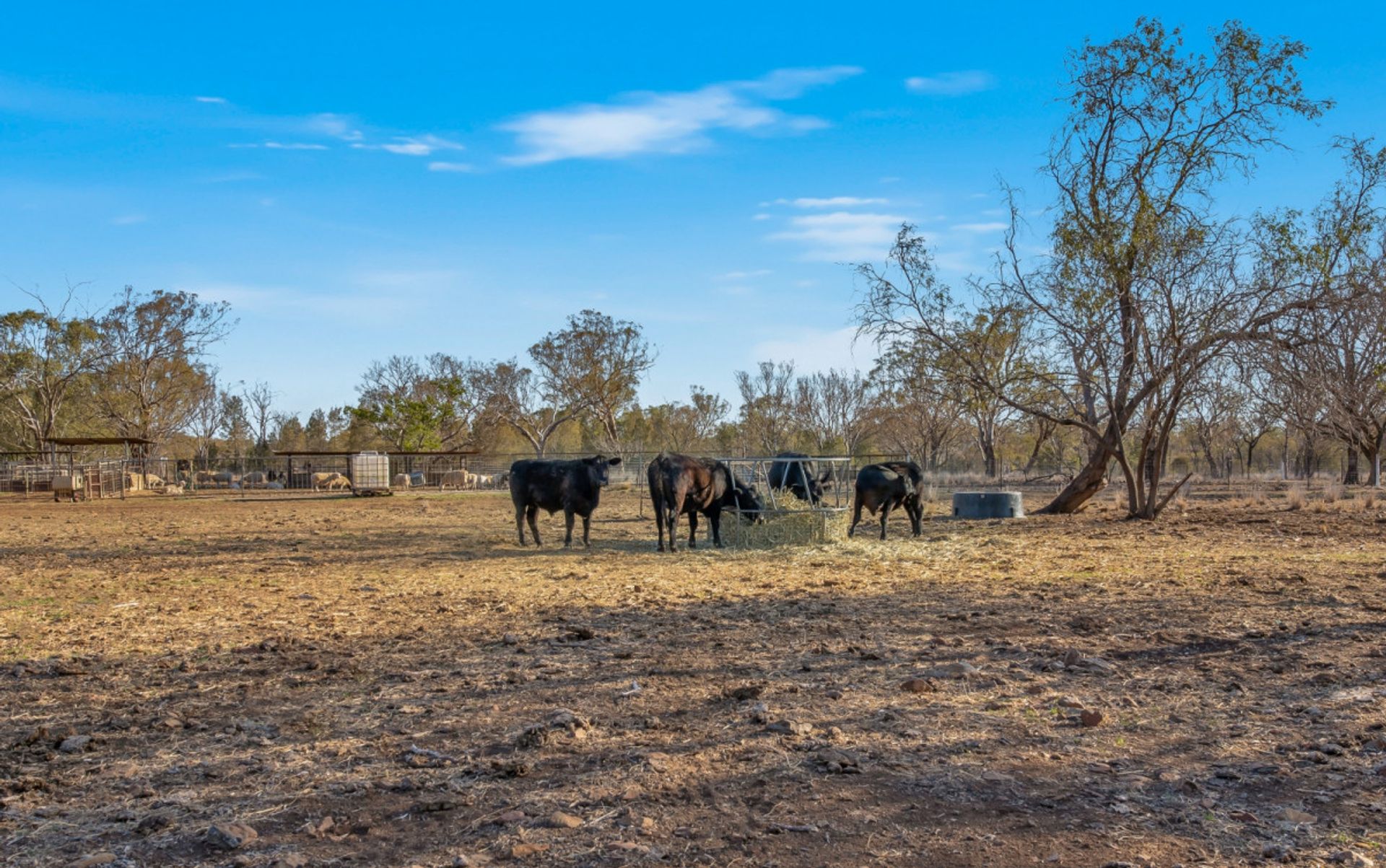 * Cattle yards predominately steel construction, includes vet crush, loading ramp, 3 way draft, and three feedlot pens.