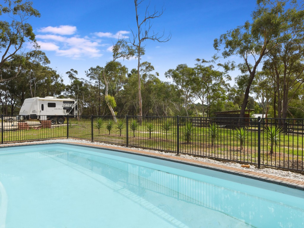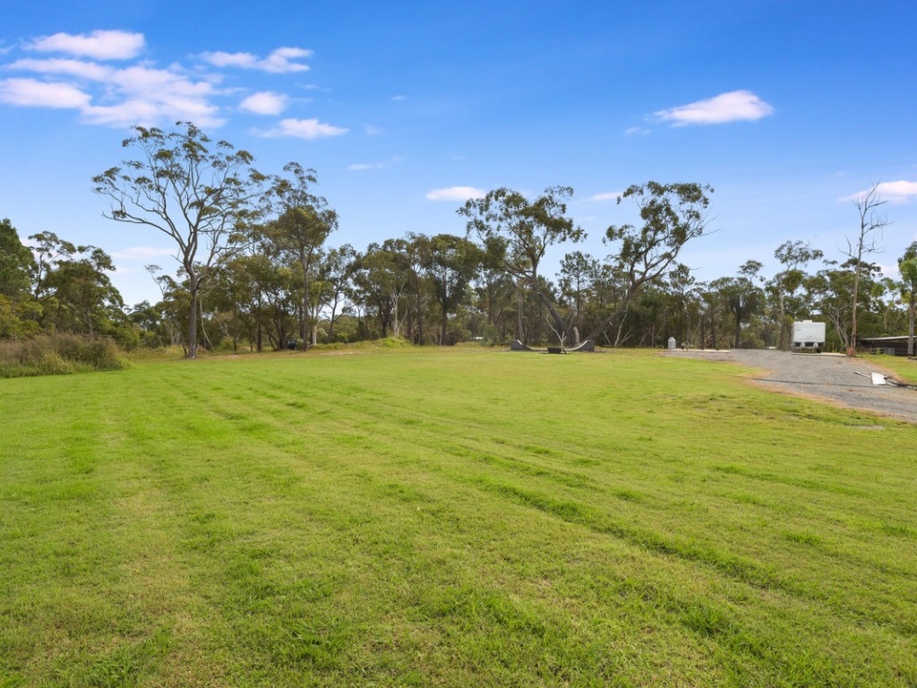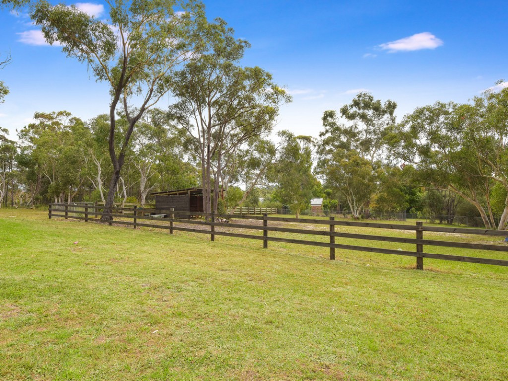 Featuring a fully renovated, light and airy 5-bedroom home, in-ground swimming pool, renovated granny flat and simply stunning large 25m x 18m industrial shed with new office fit out, kitchen facilities and full bathroom facilities, 90% complete. Mostly fenced, the land is flat and generally clear with bike tracks and secure horse paddock & shelter and potential for further development. Water supply is via underground bore. Two new garages have just been completed, one for parking over 4 cars and includes an expansive covered deck leading to pool. The other, an over-sized 2 car garage.