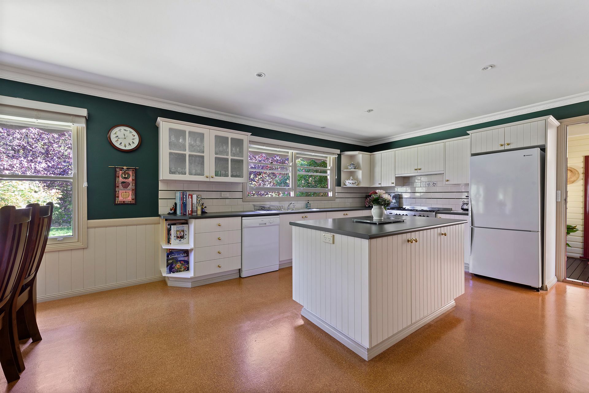 The home is a classic weatherboard with Colorbond roof and a wrap around verandah that presents many delightful and private spots to sit and enjoy the peace and tranquillity of the established gardens, and out through the rose arbour to the "lake".