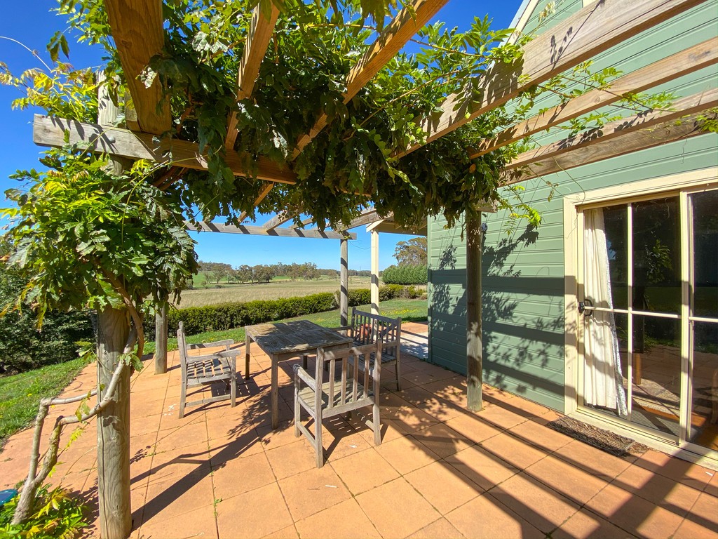 • Enjoy an afternoon tipple on the paved verandah under a wisteria covered pergola.