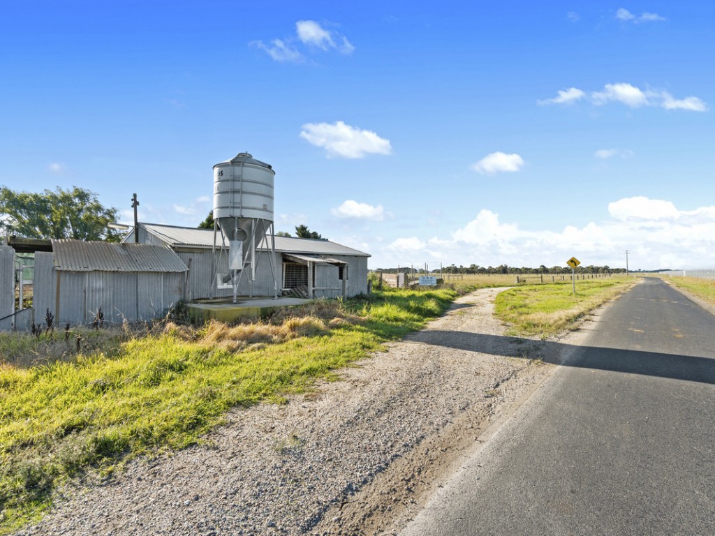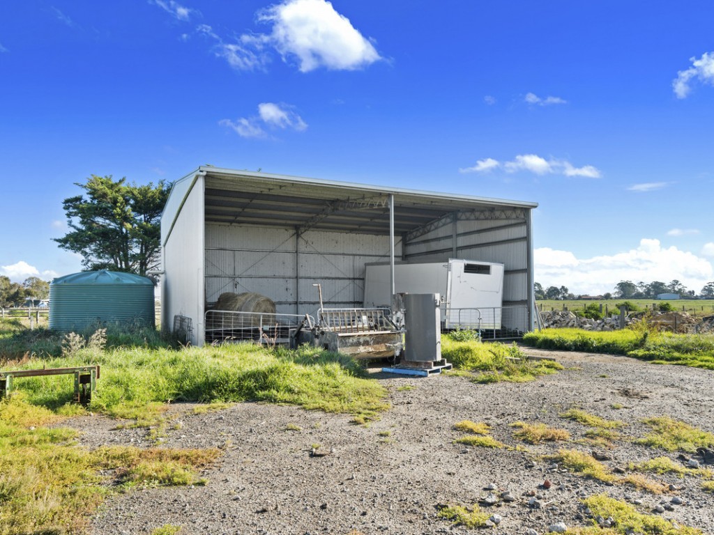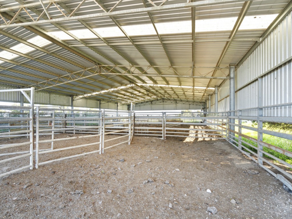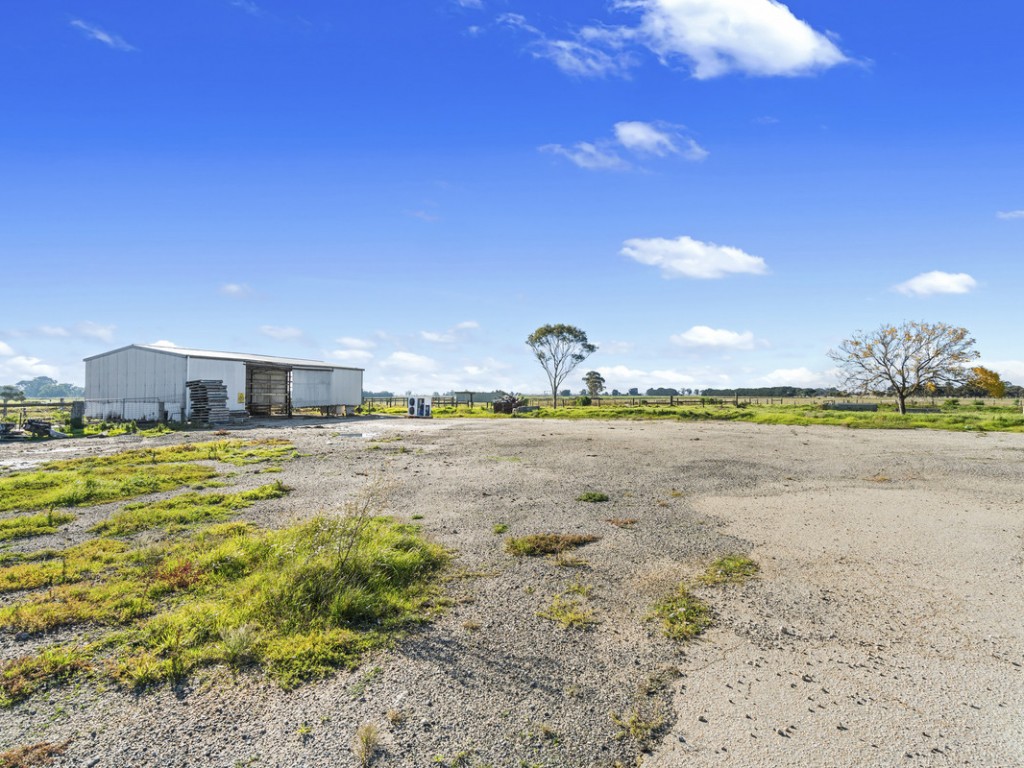 Large steel shed with internal yarding, 2 x silos, bore, effluent pump, portable offices and kitchen, various shedding including hay shed, loading race, portable yards