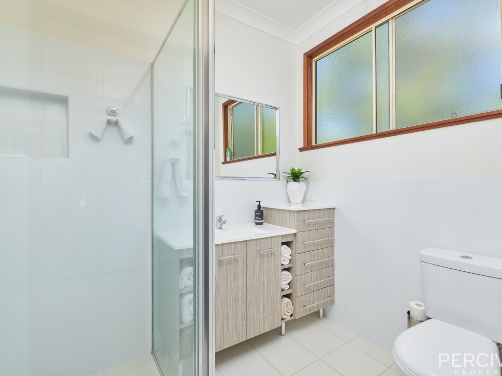 Accommodation includes four bedrooms, with the secluded master suite featuring a walk-in robe and ensuite. The other three large bedrooms would all accommodate a queen-sized bed, and are serviced by the homes well presented main bathroom which also includes a spa bath.