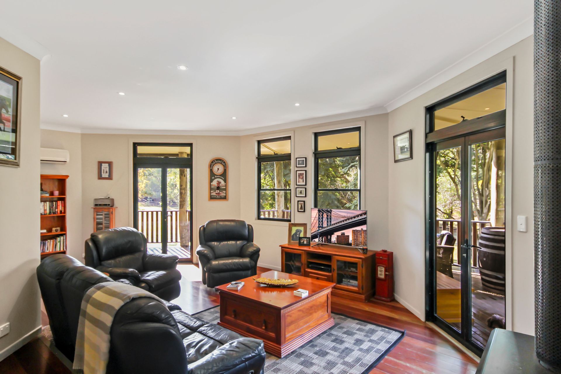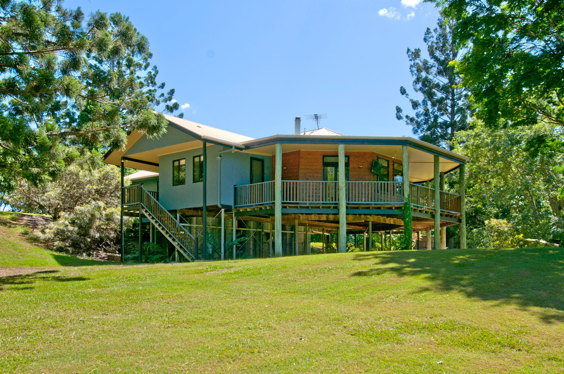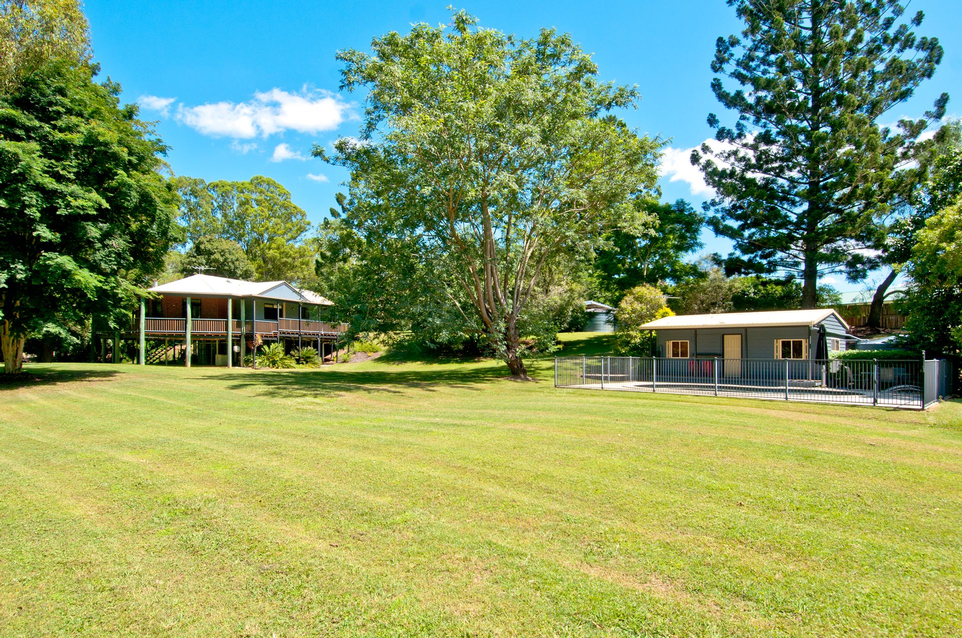 The main home is a stunning pole home – set high to take in the views this home would be a wonderful place to grow a family and enjoy all it offers, let me tell you just some of its features:- Polished timber floors, New Guinea Rosewood kitchen, stone bench tops, air conditioning, slow combustion wood heater, 2 bedrooms all with built in robes, main bedroom with ensuite and walk in robe. Lounge room that looks out to verandas and over the acreage, Dining room and study area off the kitchen.
