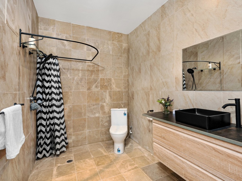 * Downstairs has a self contained area with bathroom, kitchen, bedroom, open plan living and courtyard
