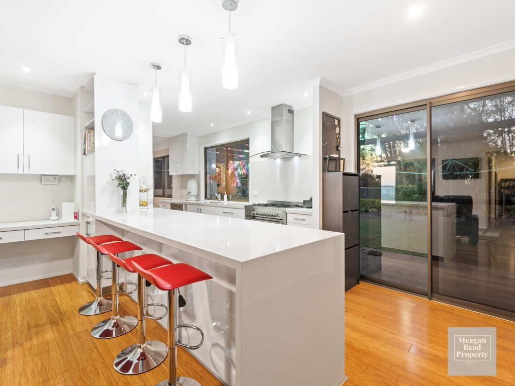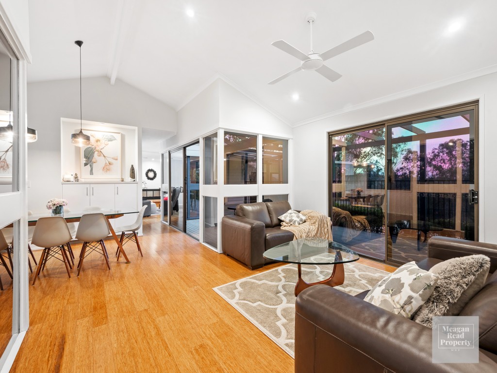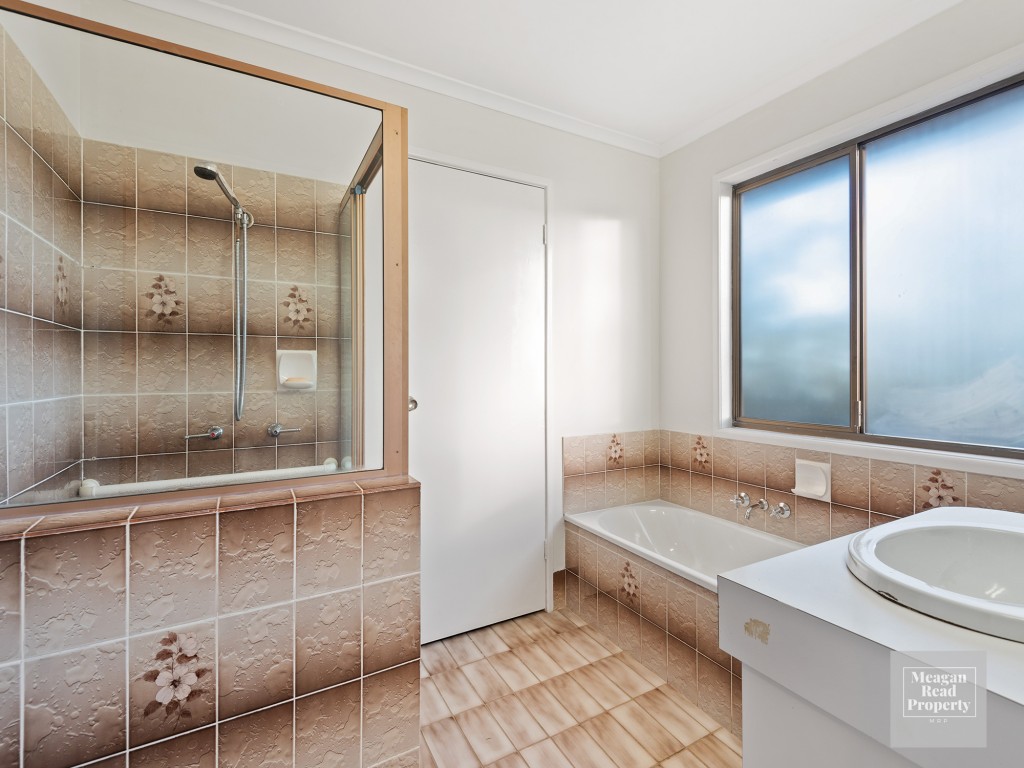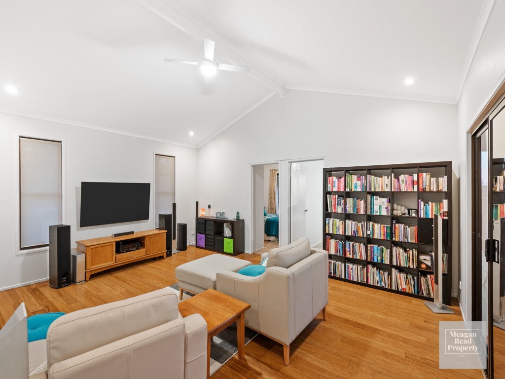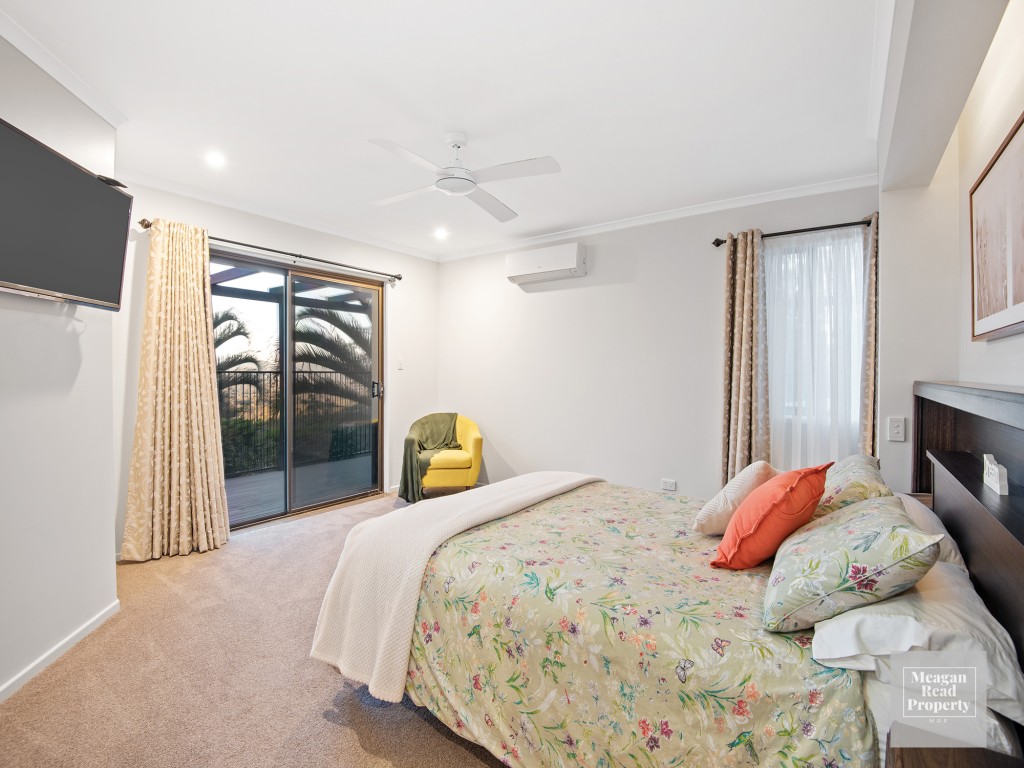 Located to the other end of the home is the grand Master bedroom, with a huge walk around Hollywood robe, A/C, ceiling fans, stunning renovated ensuite, with stone top dual vanity, rain water head shower, a separate sitting area, office, or ideal nursery, all opening out onto the deck.