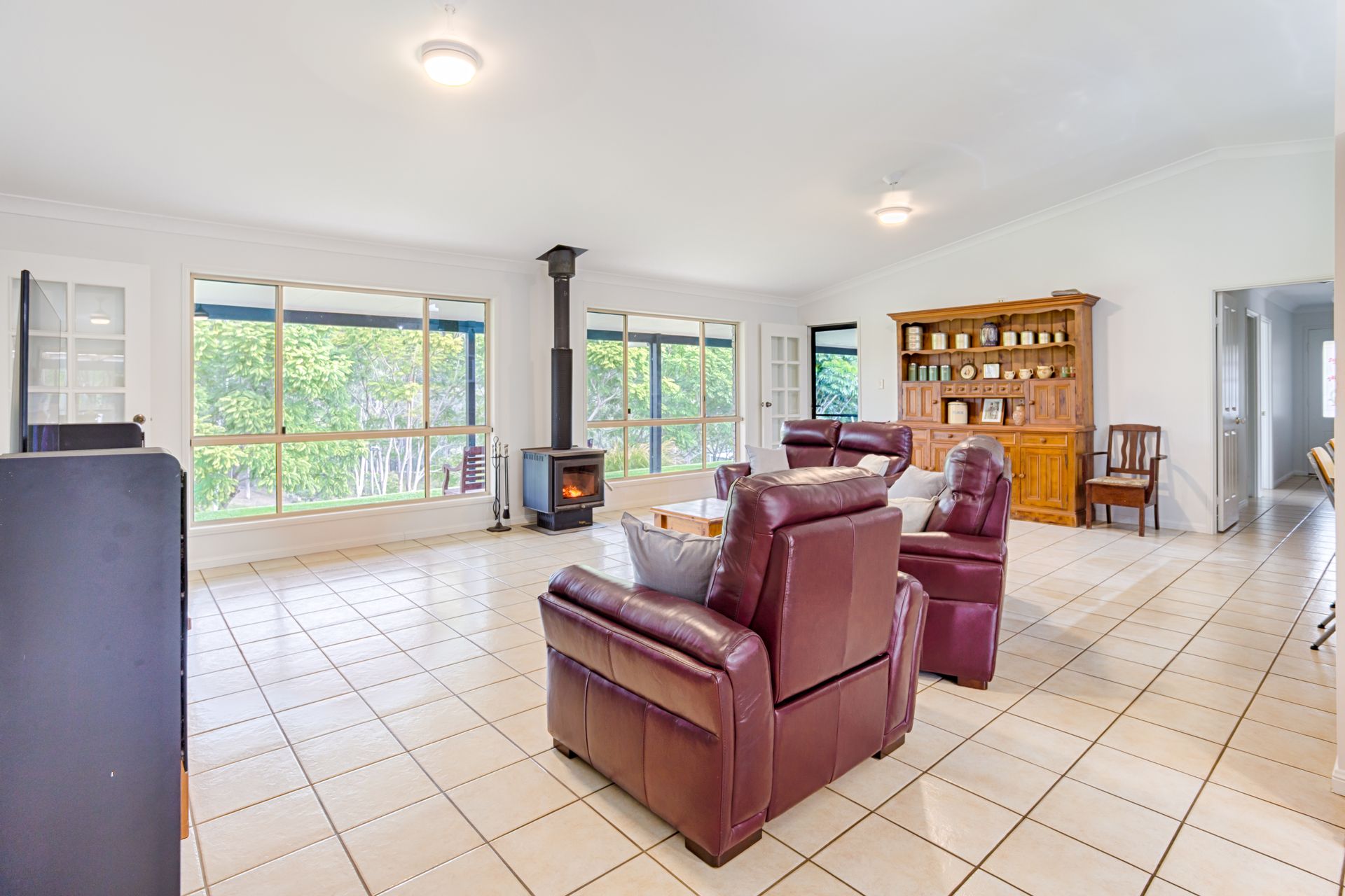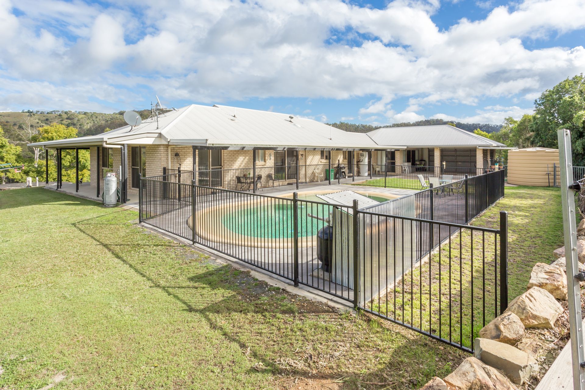 Tucked well away from the road on a private 23.5 acres of rolling hills is this expansive family-friendly lifestyle home with a prized northern outlook showcasing glorious views encompassing majestic Mount Cooroora, plus separate self-contained granny flat/studio and high-quality onsite infrastructure.