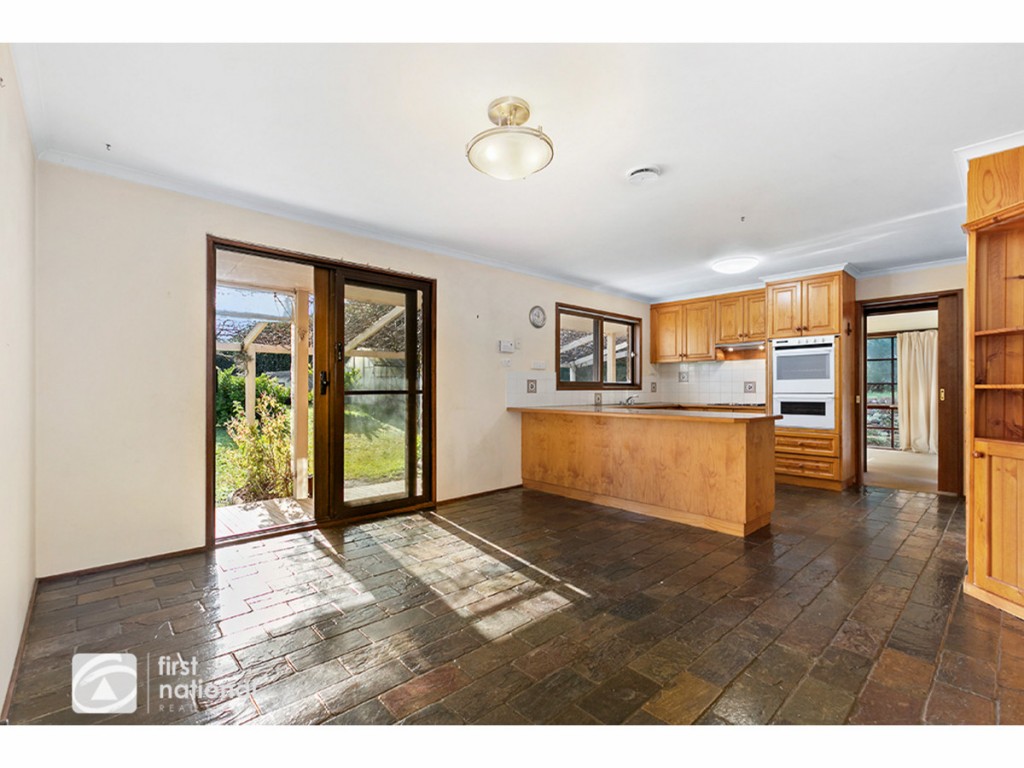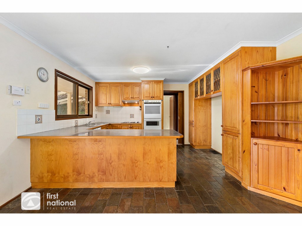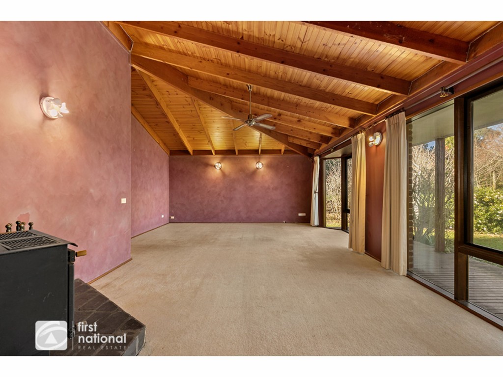 This home has front and rear veranda's, formal entry, generous airy light filled family living room with feature timber lined raked ceiling and beckoning wood heater to sidle up to and north facing practical open plan kitchen and meals area that boast those amazing views.