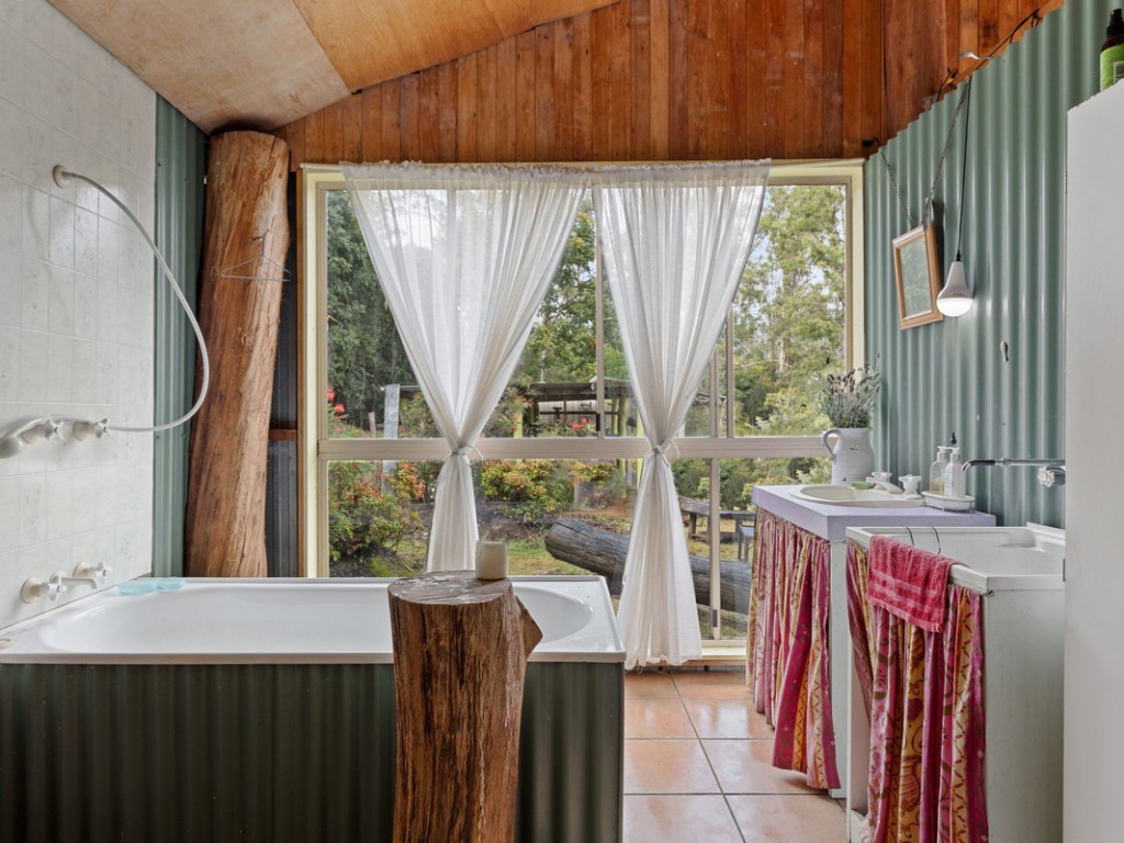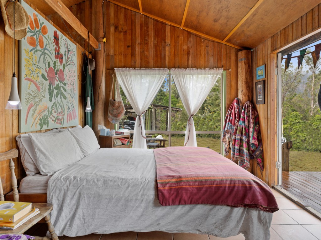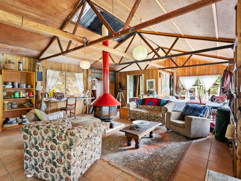 The Main Cabin includes a gas cook top and gas hot water, a slow combustion stove and a large fireplace. Incorporated in the main cabin is the master bedroom and bathroom. a Large spacious deck allows for uninterrupted views of nearby escarpments and the surrounding forest.