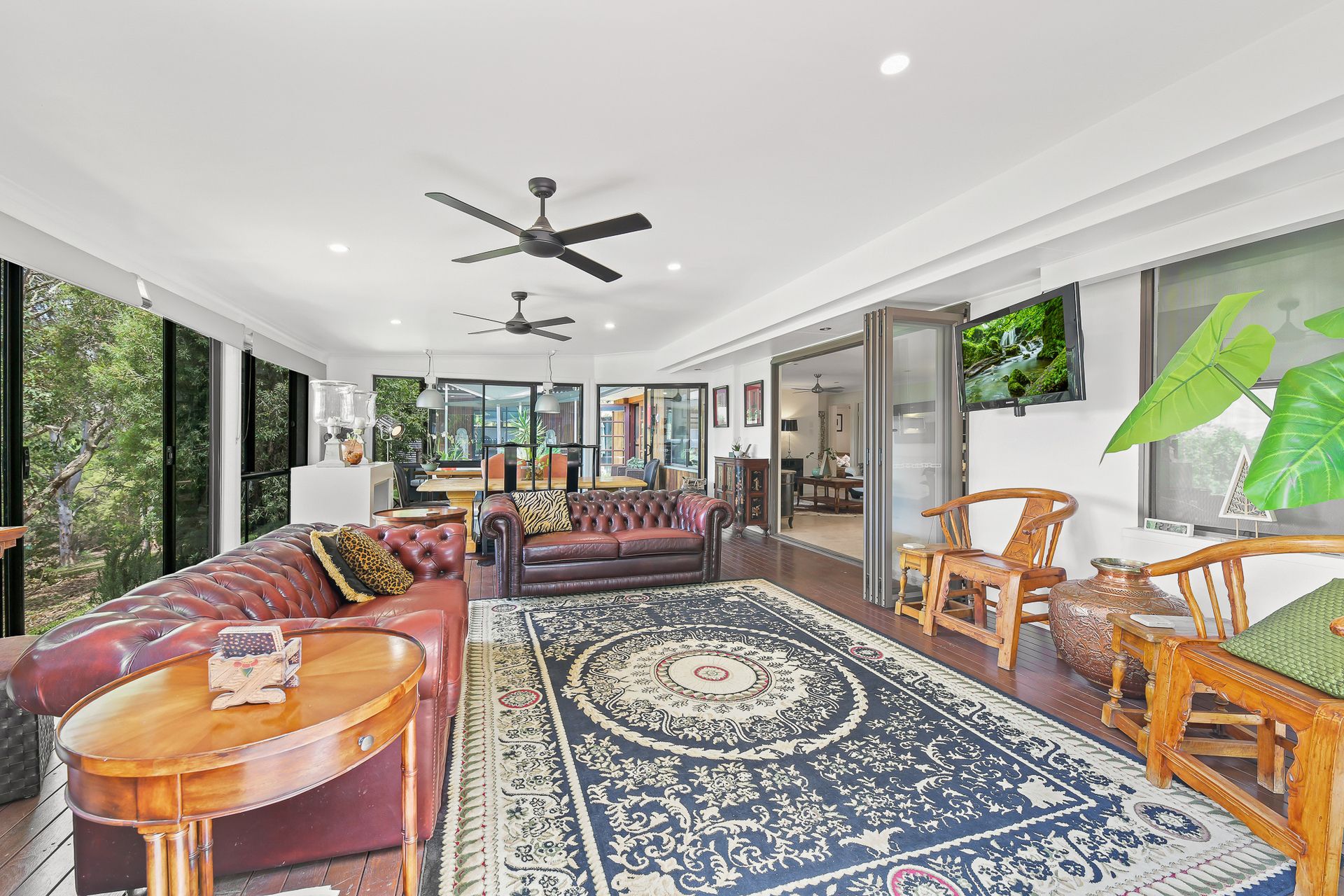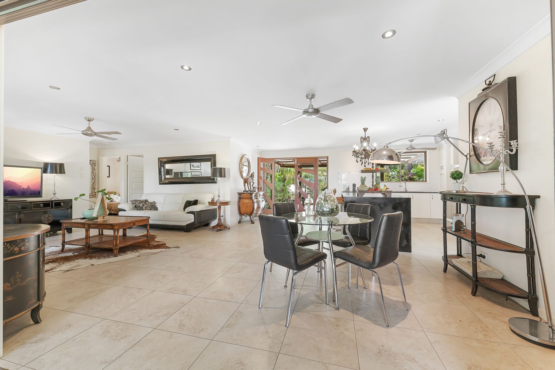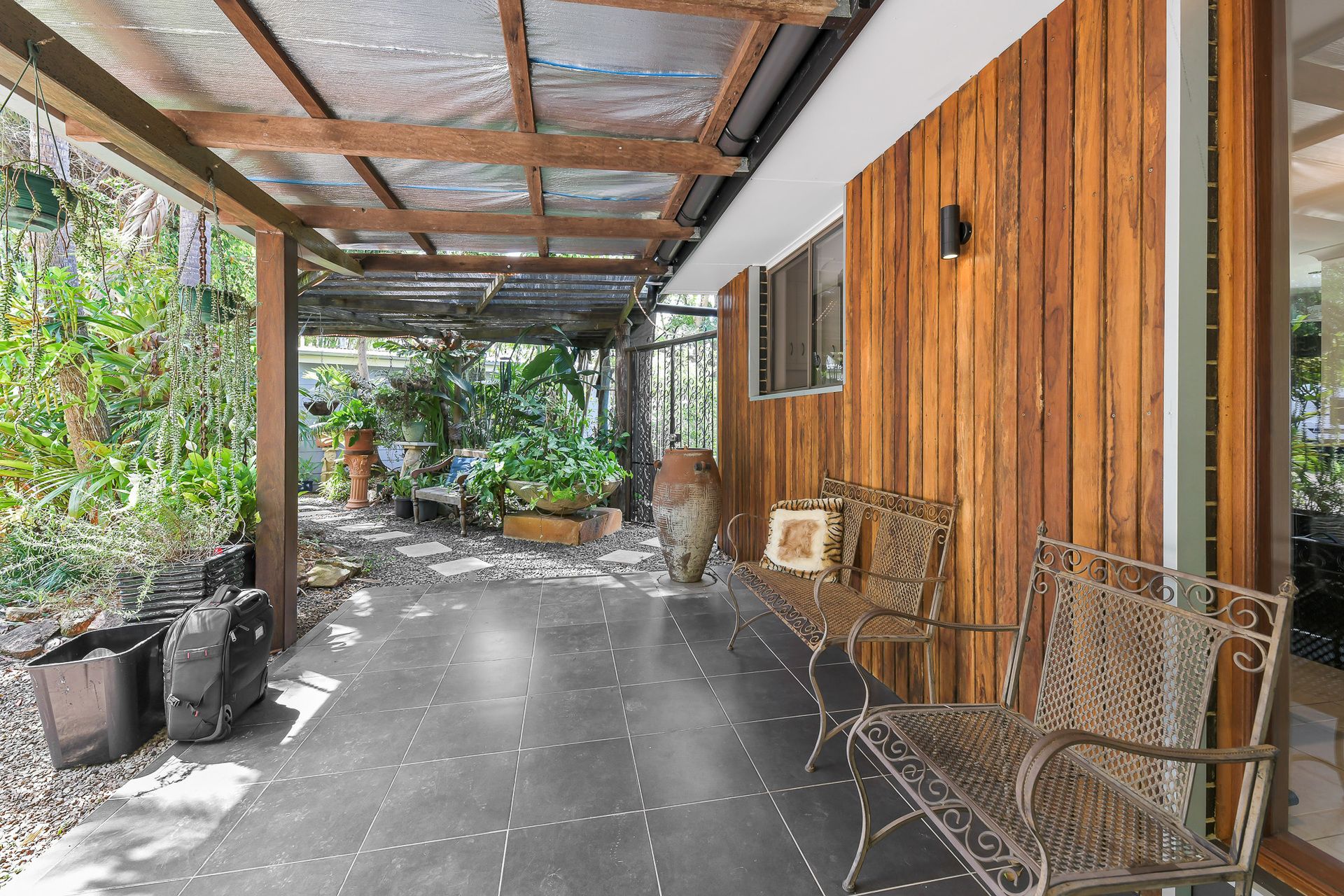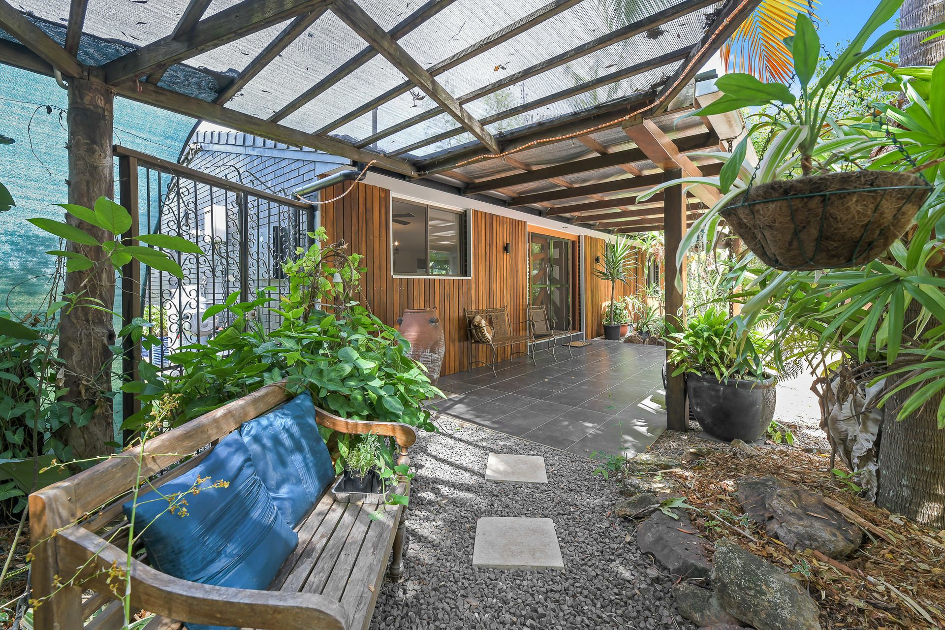 Flowing directly from the living area through bifold doors is a screened in north east facing deck which is more of an outdoor room. Entertaining is made easy with the yard easily accessible from this zone. The outdoor space has a covered barbeque deck, plenty of grassed space for the kids and pets to play, and beautifully manicured gardens with a variety of fruit and native trees.