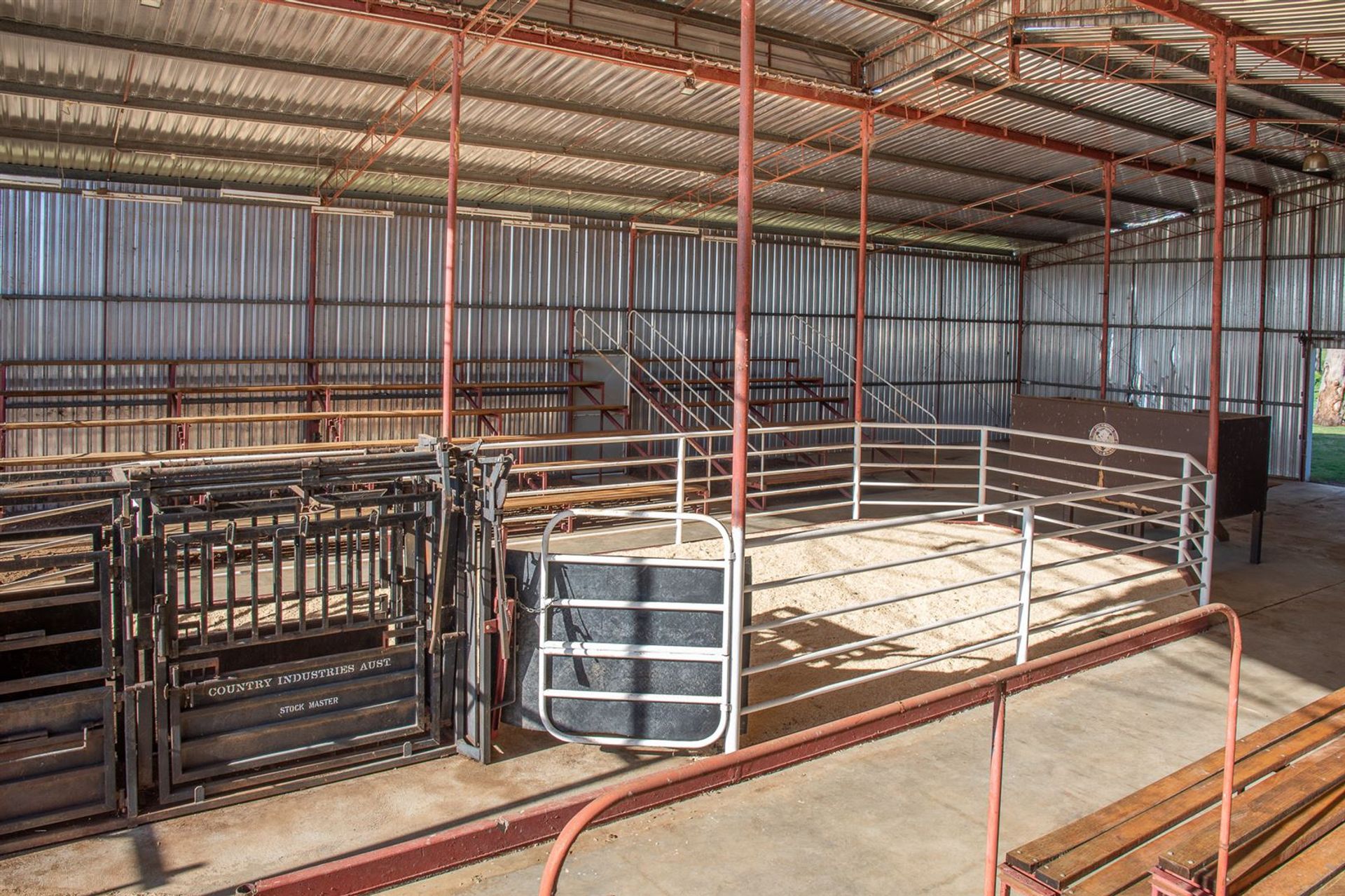 - Indoor sale arena featuring a roof that can be open or closed.