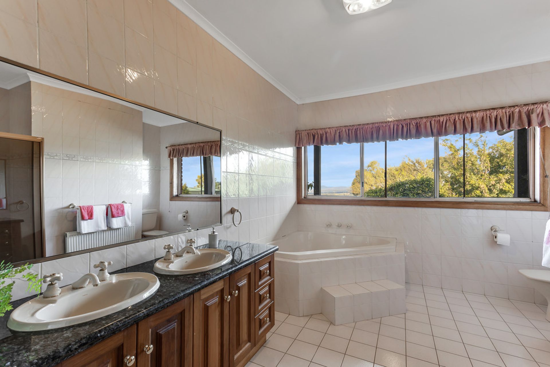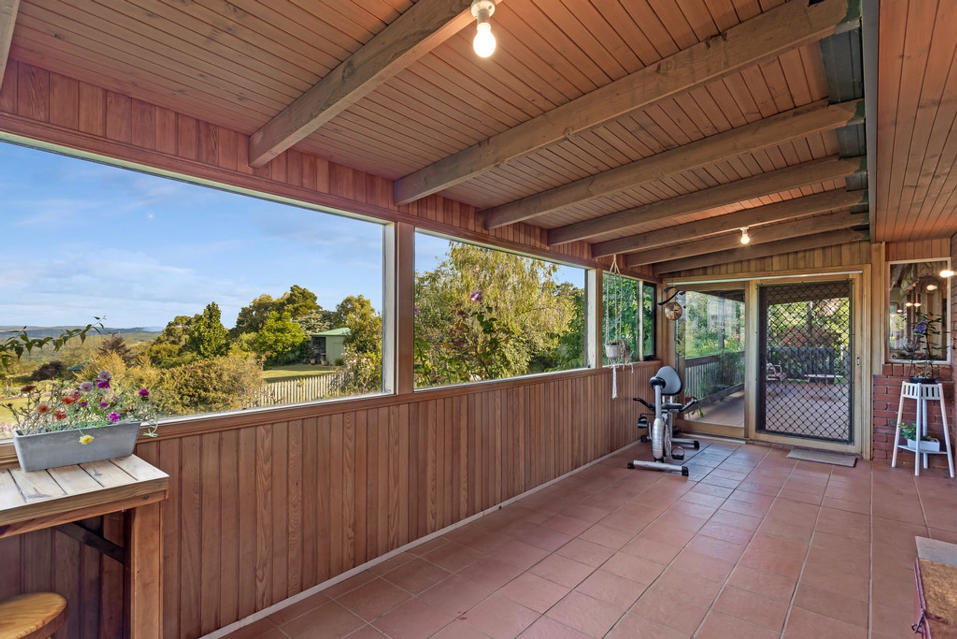 Further enhancements include wood heater, hydronic heating throughout the home, ceiling fans, bay windows, terracotta roof tiles and solar panels with battery.