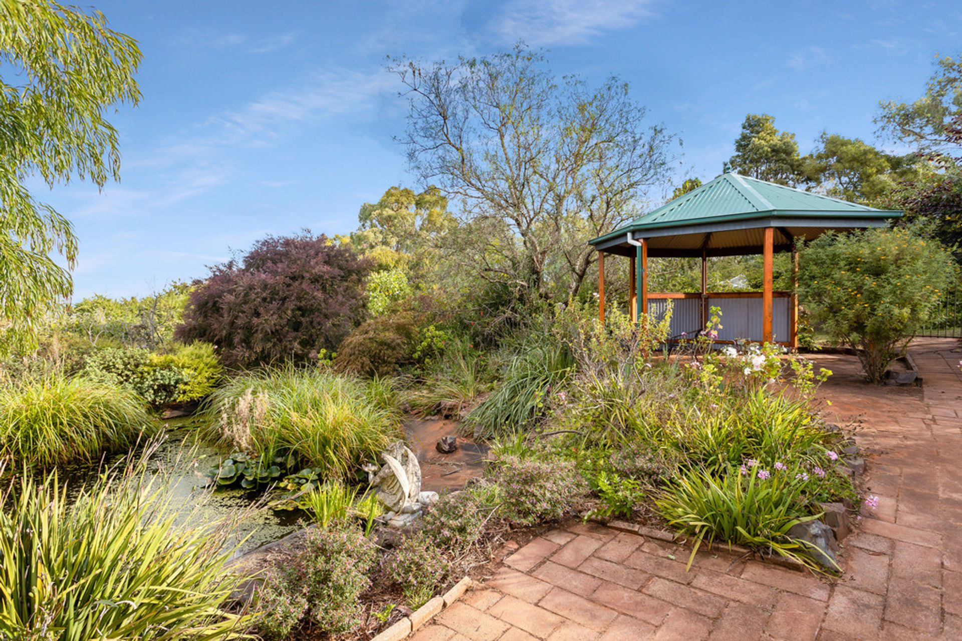As you wander through the well-established garden and walk by the various fruit trees, you would be forgiven for thinking this was a scene taken from Alice in Wonderland. The garden also features a fully fenced pond and gazebo; another great spot to sit and relax.