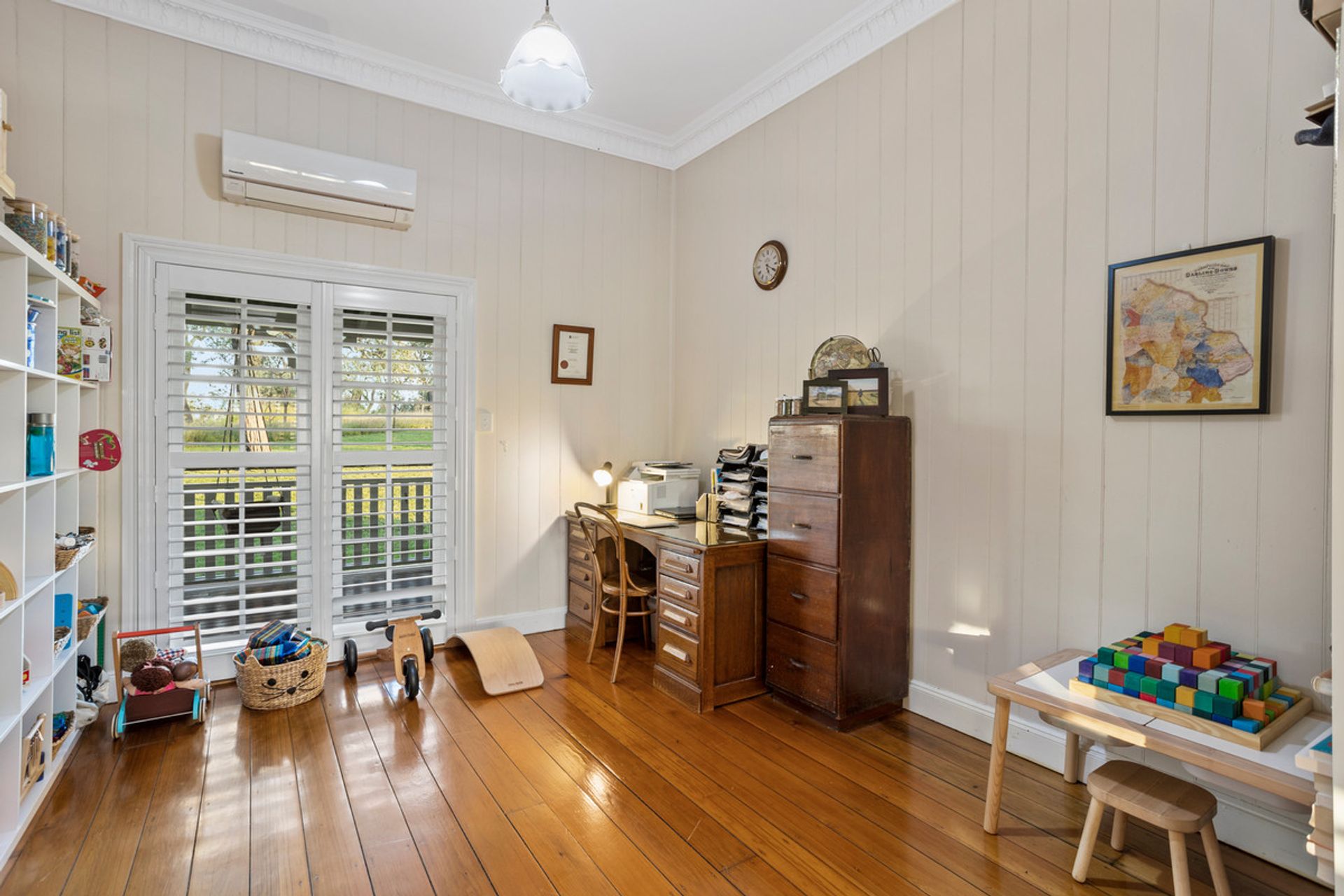 The charming Queenslander home is positioned in an elevated setting which over looks the entire property and surrounding area with uninterrupted views. Typical of its character, the home inside consists of tongue and groove walls, wide polished hoop pine flooring and ornate architraves. Recently renovated, the home has three bedrooms, semi open kitchen dining and lounge room, single bathroom and wrap around verandas. Each room is setup with reverse cycle air conditioning.