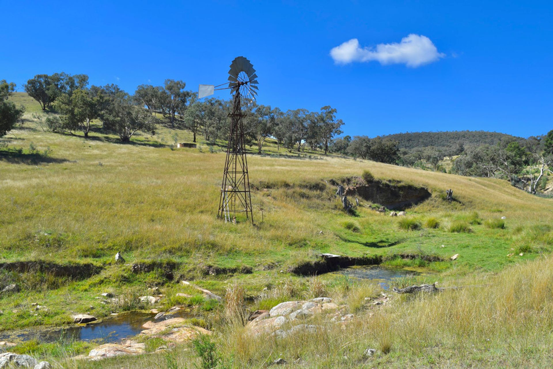 'Oaklands' and 'Smiss Salib' are located East of Eugowra on the Reedy Creek Road with frontage to the Reedy Creek. 'Oaklands' is 1830 ac with 10 Dams of which 5 are spring feed and 2 windmills on wells, so water has never been a problem for the current vendors.