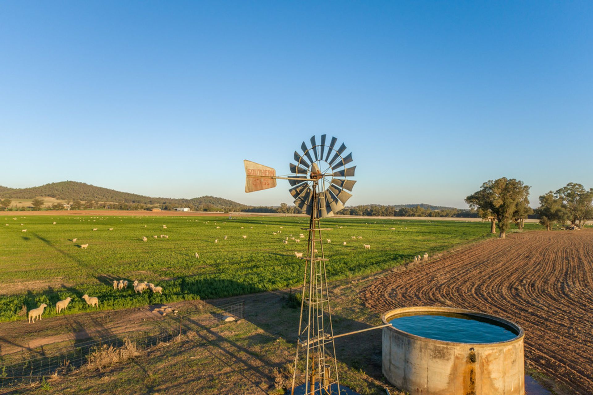 WATER: New stock watering system with troughs in all paddocks. Bore with windmill pumps to new 110,000 gal steel tank, with a pressure pump system to 14 troughs with a further 4 hydrants. All troughs are concrete with platforms.