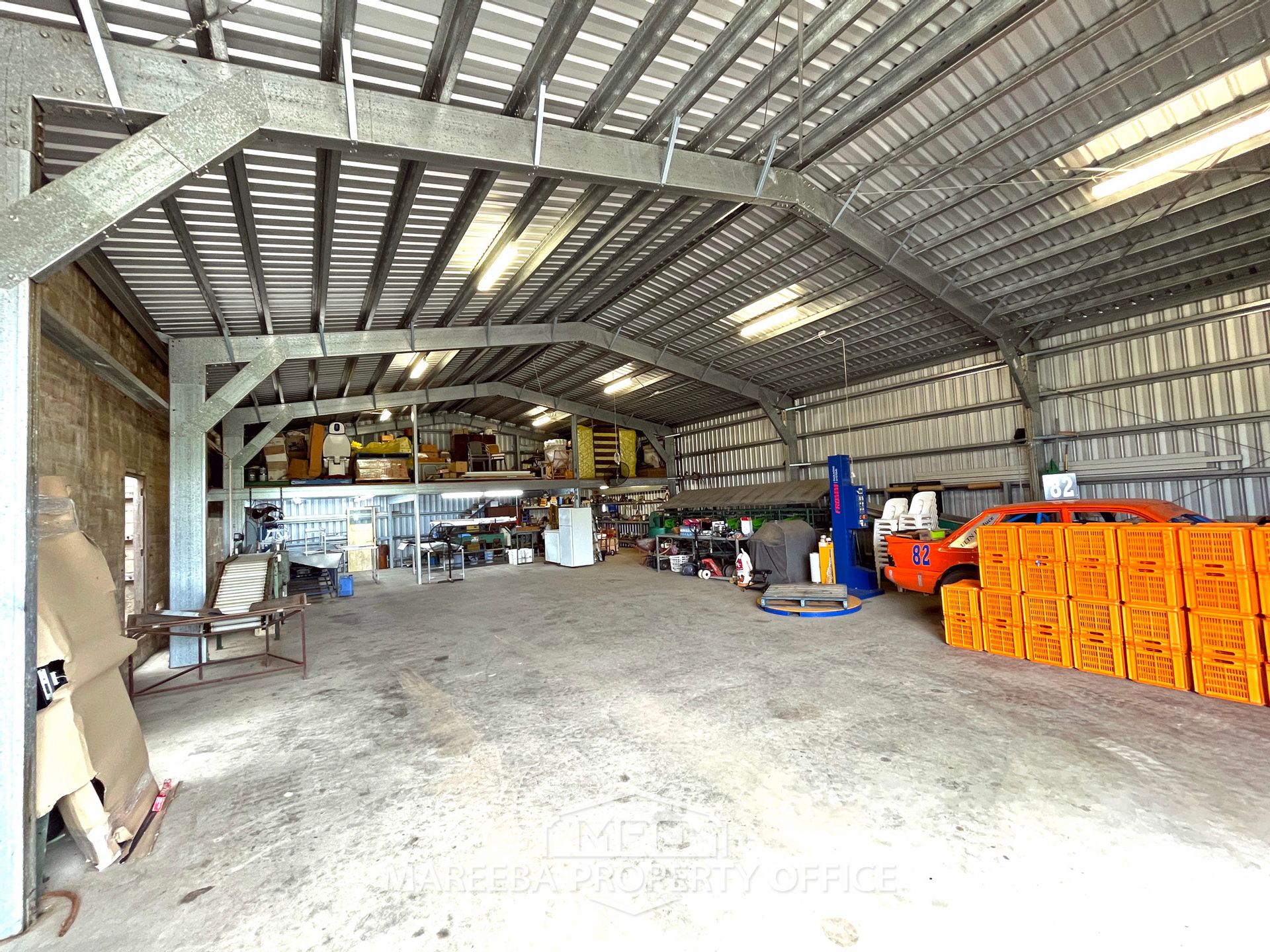* 20m x 12m packing shed, fully lockable with a 20m x 6m lean-to