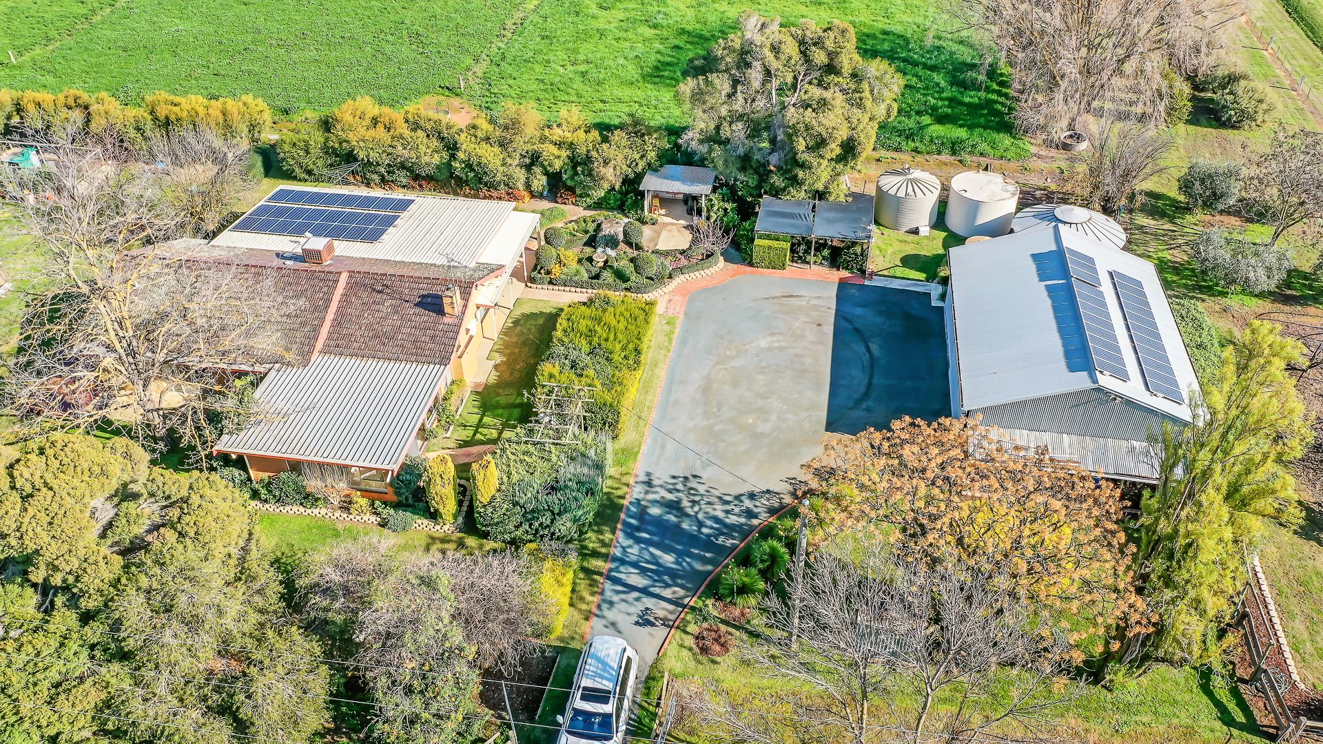 There are 2 solar systems, 1 for home and 1 for large shed with sliding doors, power and concrete floor, out buildings include disused dairy and hay shed.