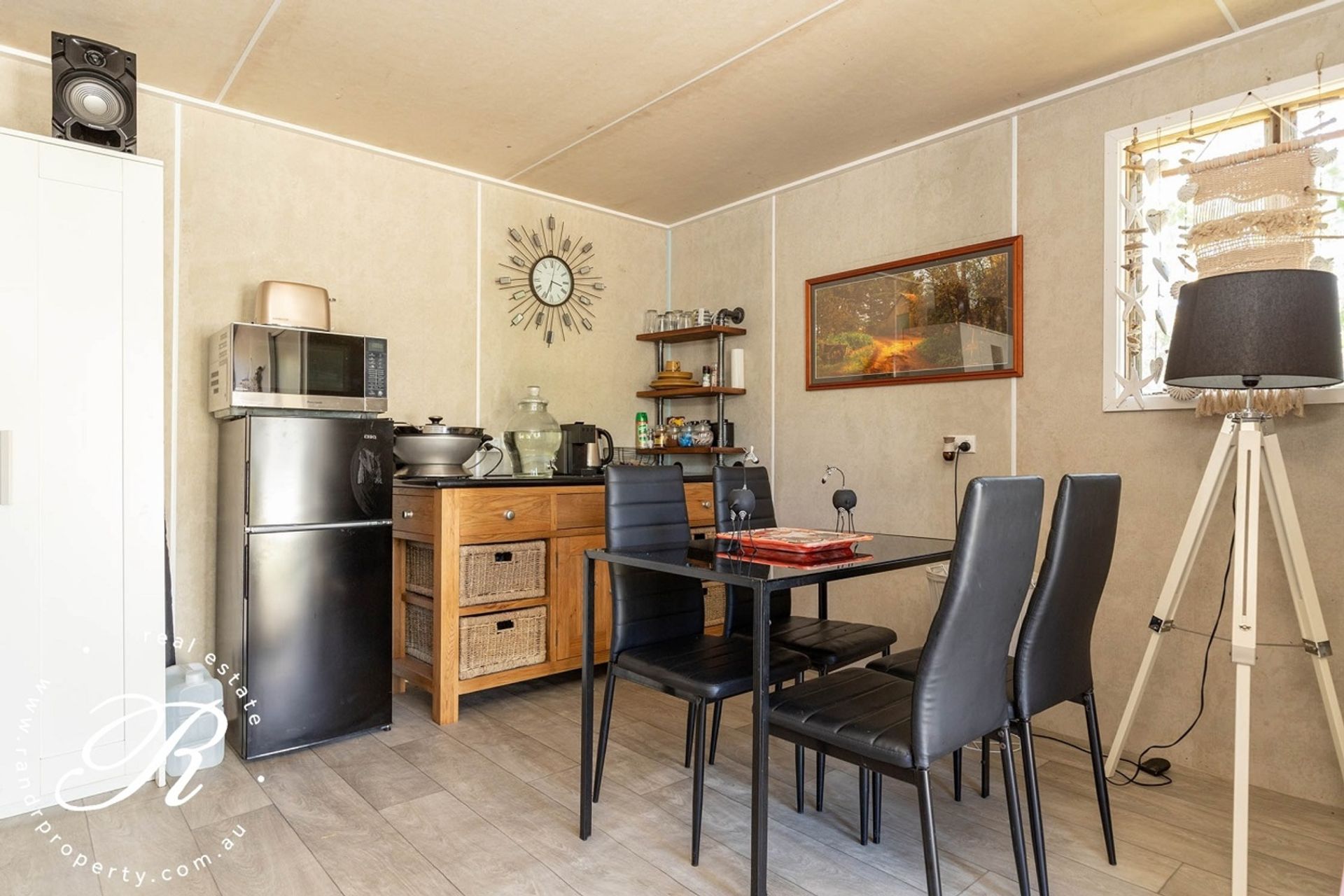 Adjacent to the home is an extremely comfortable self-contained studio. The carpeted sleeping and lounge space is complimented by a nicely presented kitchenette that meets every need. Easy care flooring makes cleaning and maintenance a breeze. The Studio offers an excellent teenager’s retreat, guest accommodation or excellent farmstay opportunity.
