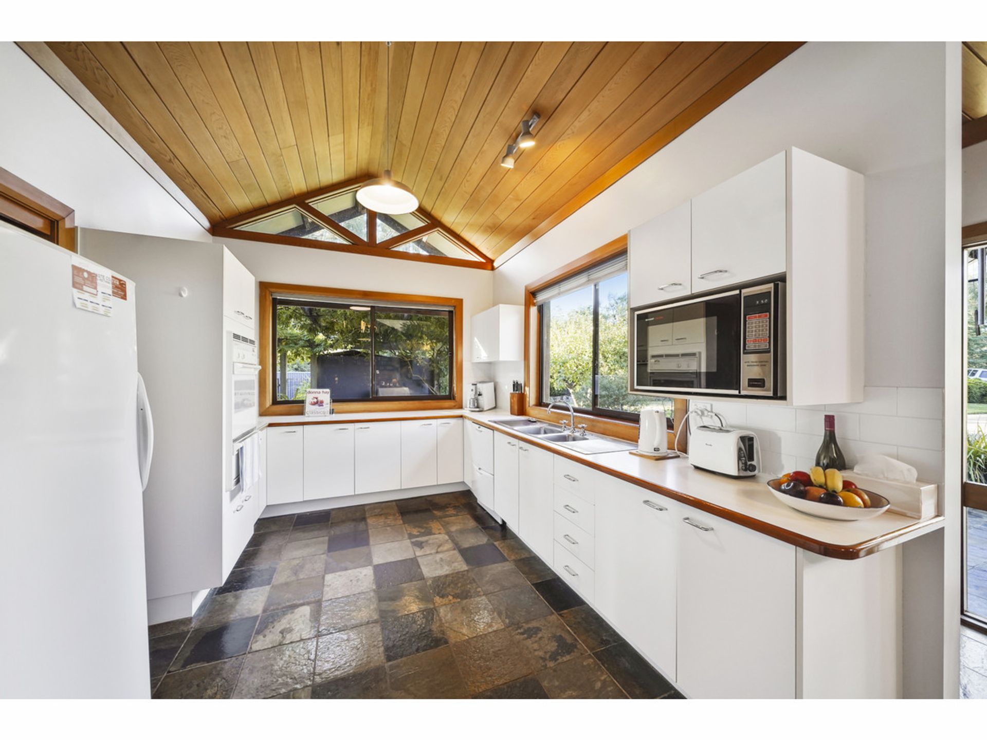 - Attractive, sun-filled kitchen with walk in pantry overlooks the sheltered outdoor entertainment area and sparkling pool