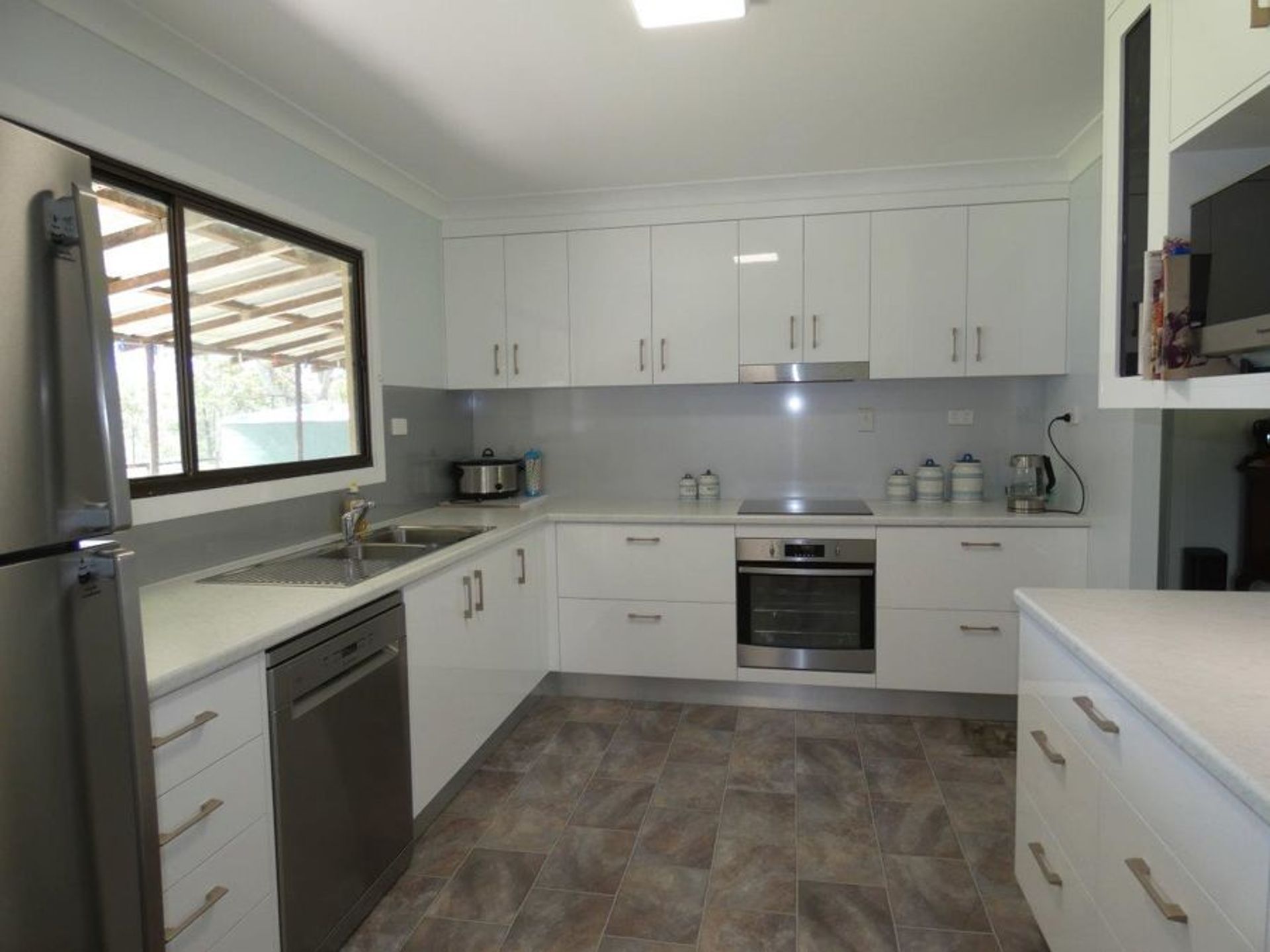Recently renovated, the home has an open plan lounge & dining room. The kitchen is modern with electric cooking, a dishwasher and heaps of bench space and pull-out drawers. Fans throughout, the living area has air conditioning as does the main bedroom which also has a built-in wardrobe. The bathroom is also modern with a great shower and both the laundry and toilet are in separate rooms. Hot water is electric and total rainwater collection is approx. 17,000 gallons. Verandahs wrap around 4 sides of the home.