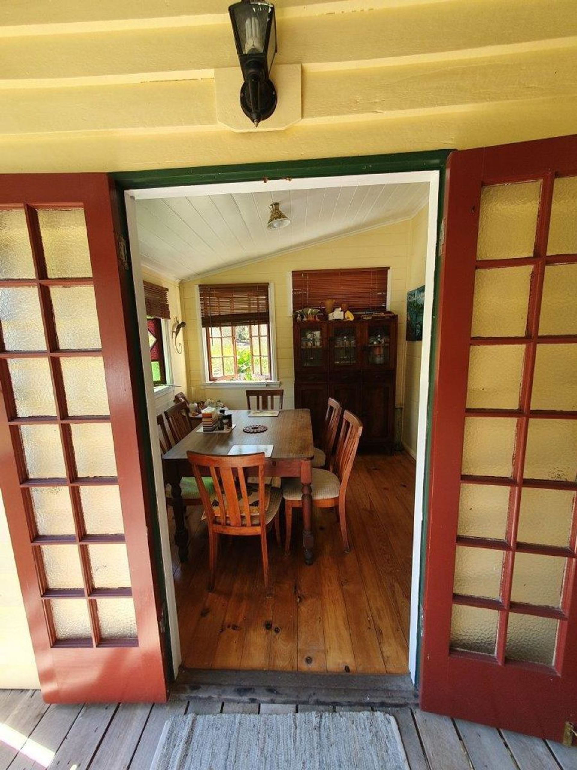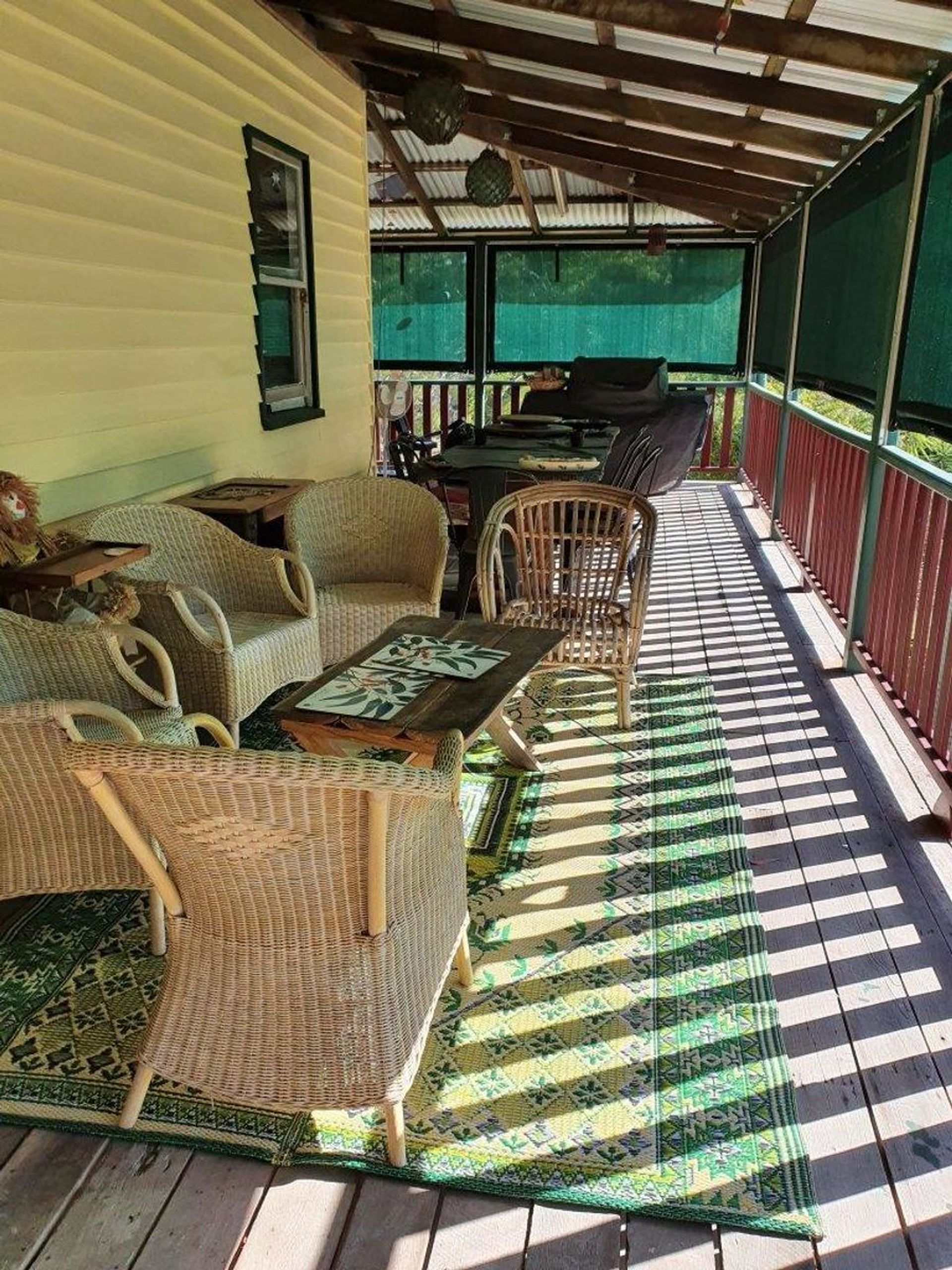 Combination of 3 large wide verandahs & deck, plus high ceilings keeps the house cool in summer and offers multiple outdoor living spaces.