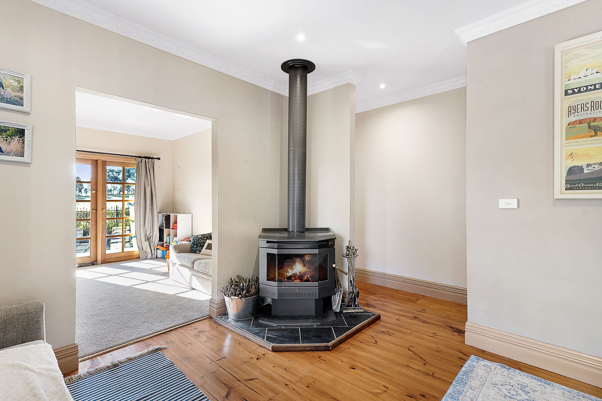 The kitchen is well-equipped with gas cooking and stainless-steel appliances. Wood heater and split system service the kitchen, meals and living area.